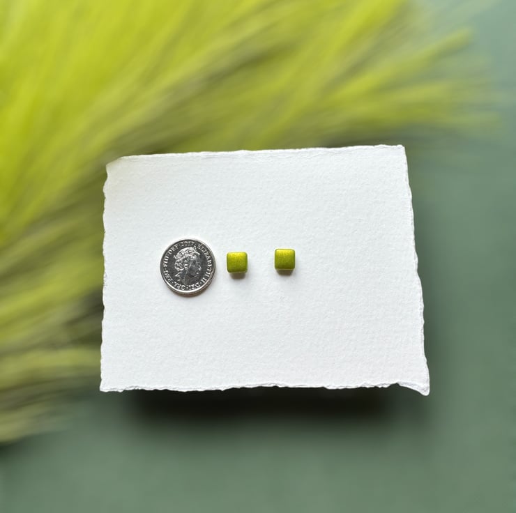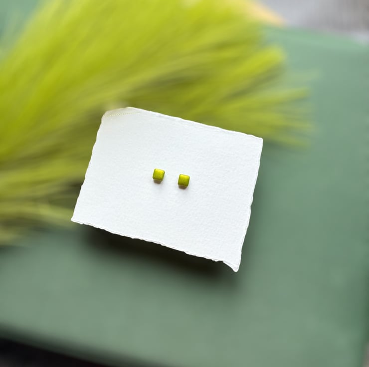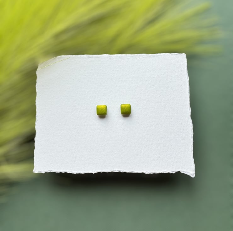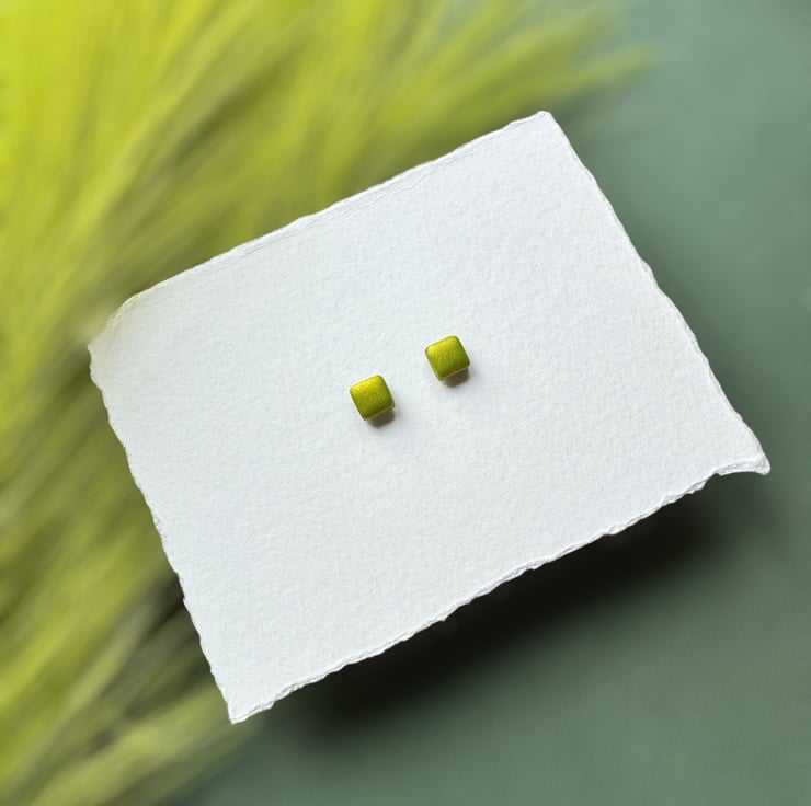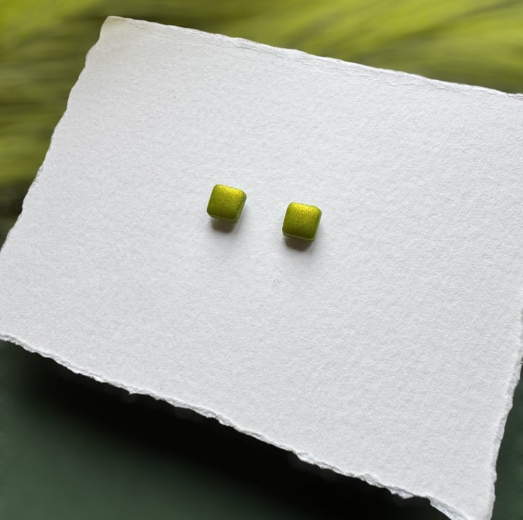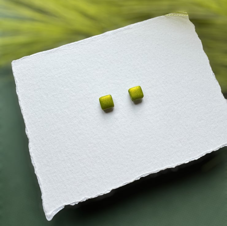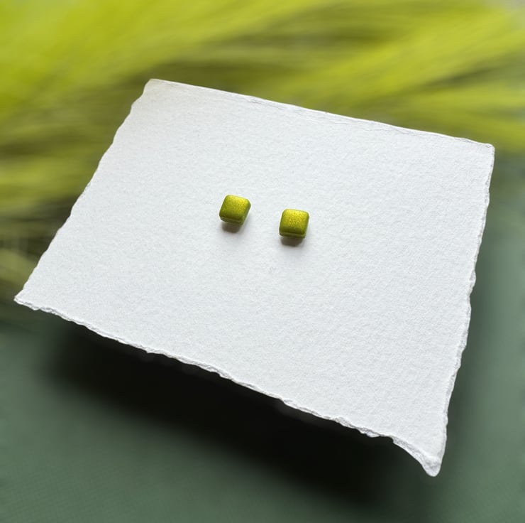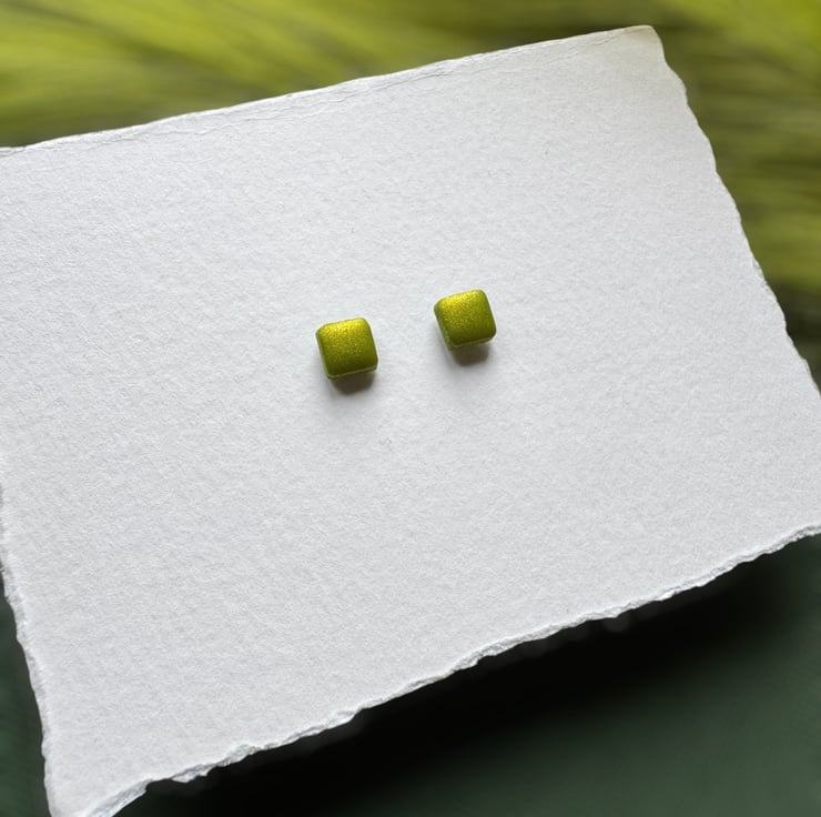 Lime Metallic Green Polymer clay shimmer twinkle Stud Earrings.