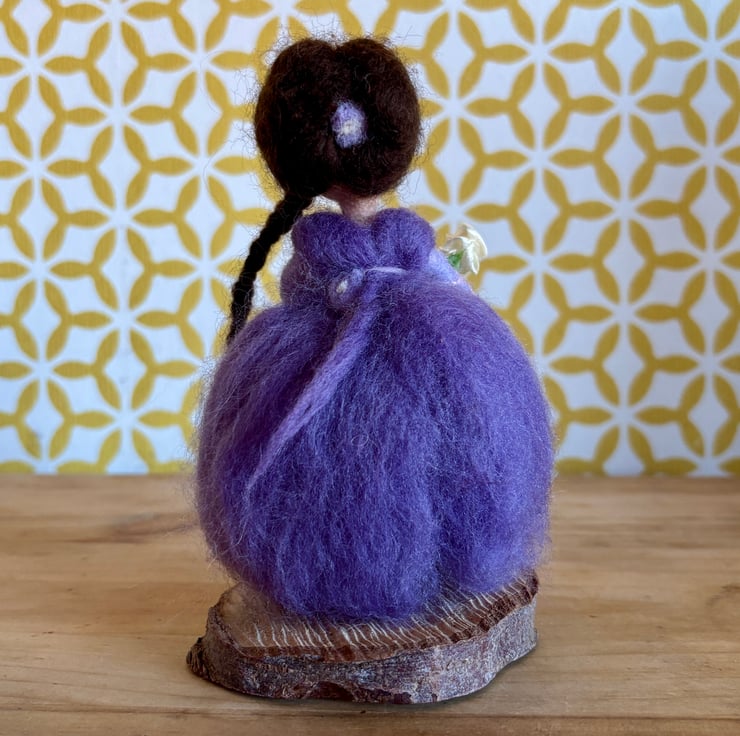 'Evie' A Needle felted figurine ornament dressed t in purple