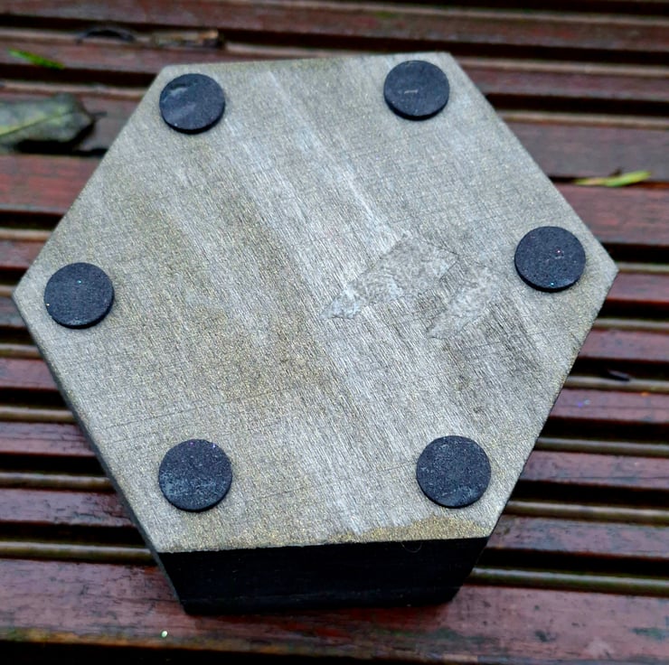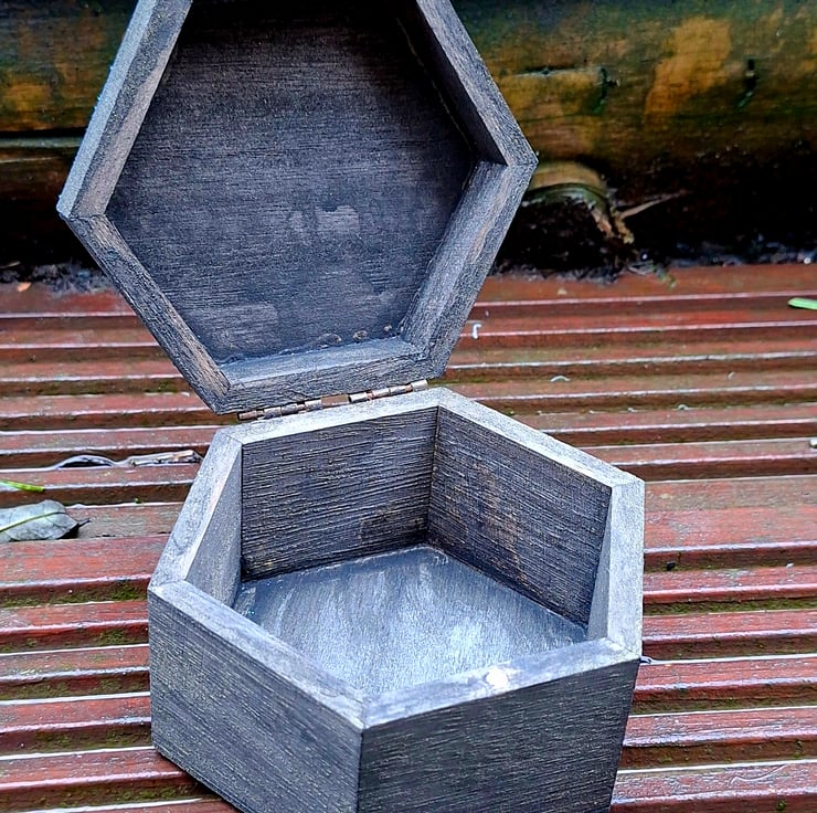Wooden Hexagon Trinket Jewellery Box gothic skeleton witchycore alt emo glitter