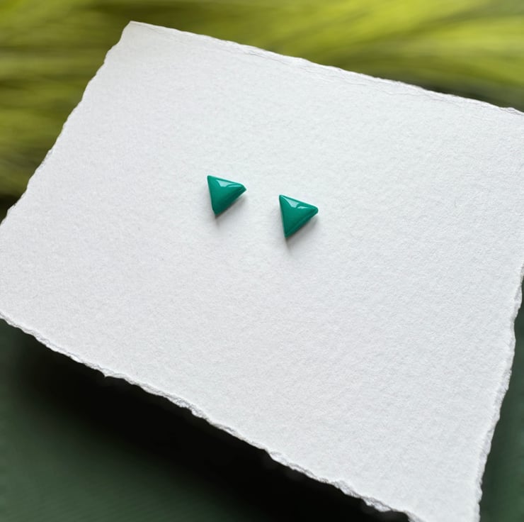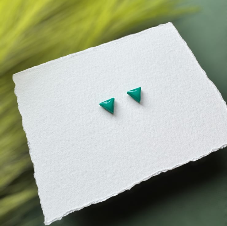 Micro Small Triangle Studs, finished with a glossy uv resin for colour enhancement.