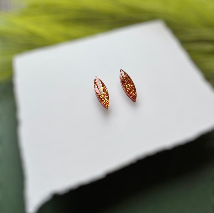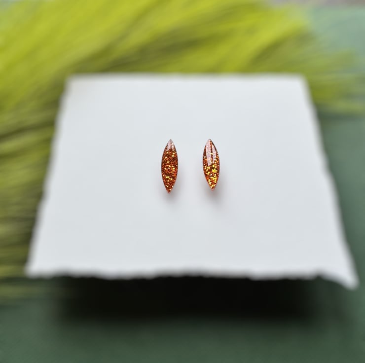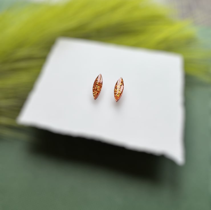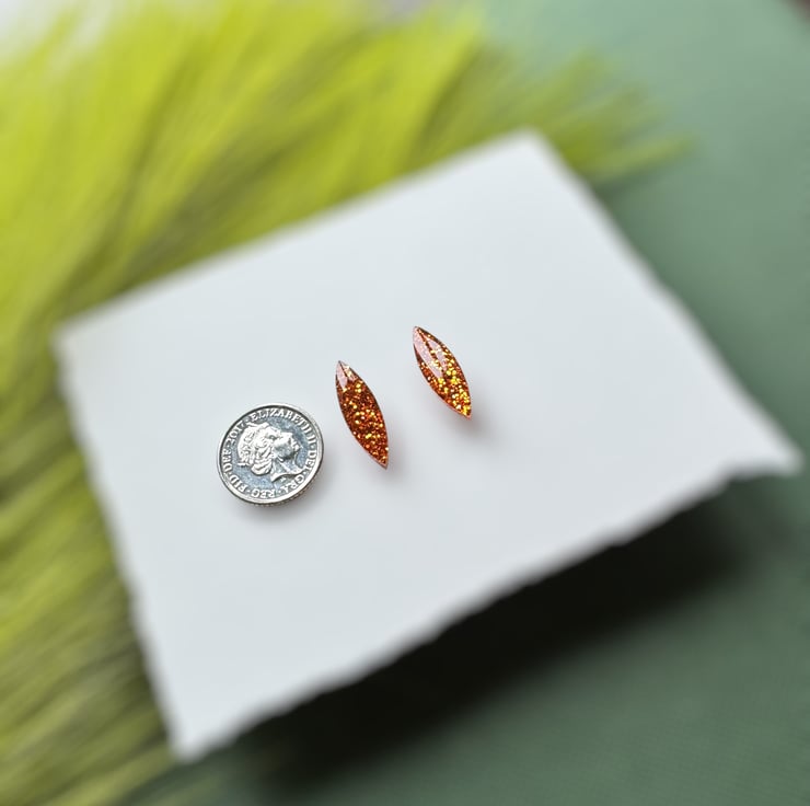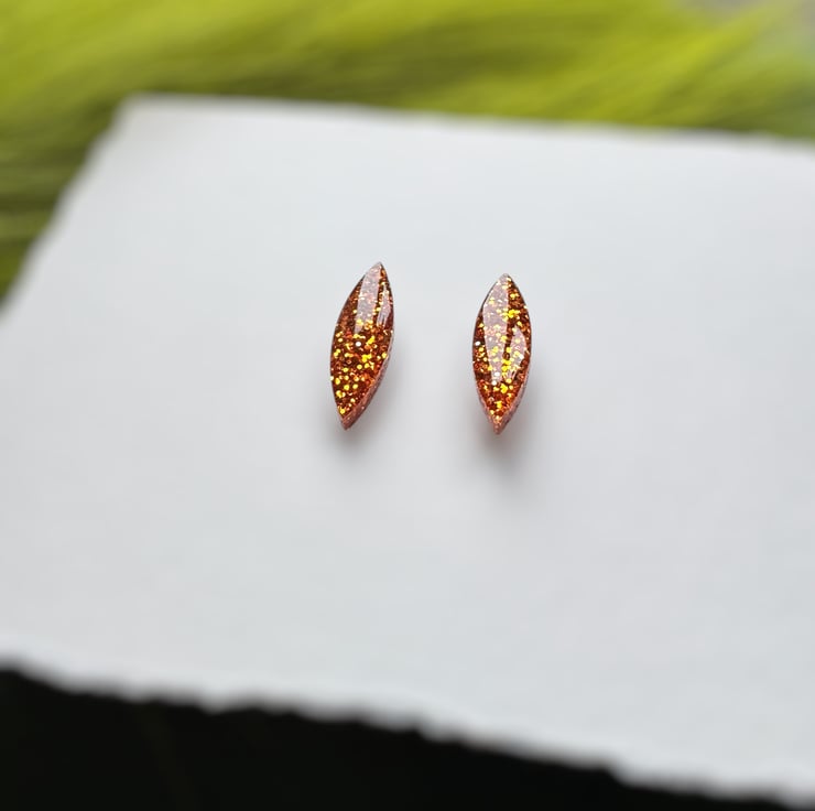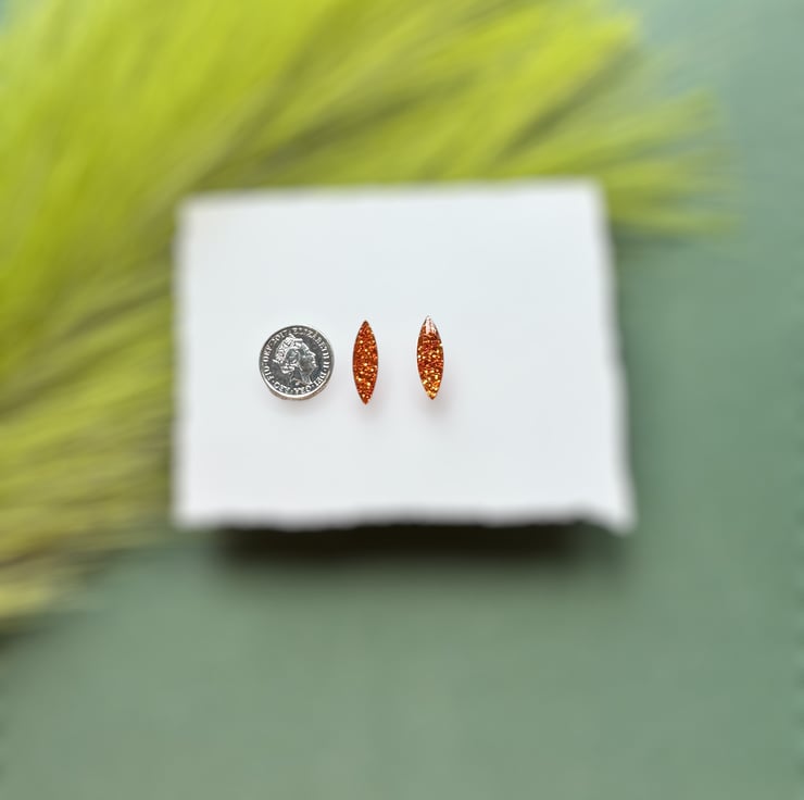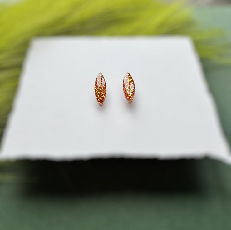 Orange Glitter Navette Stud Earrings.