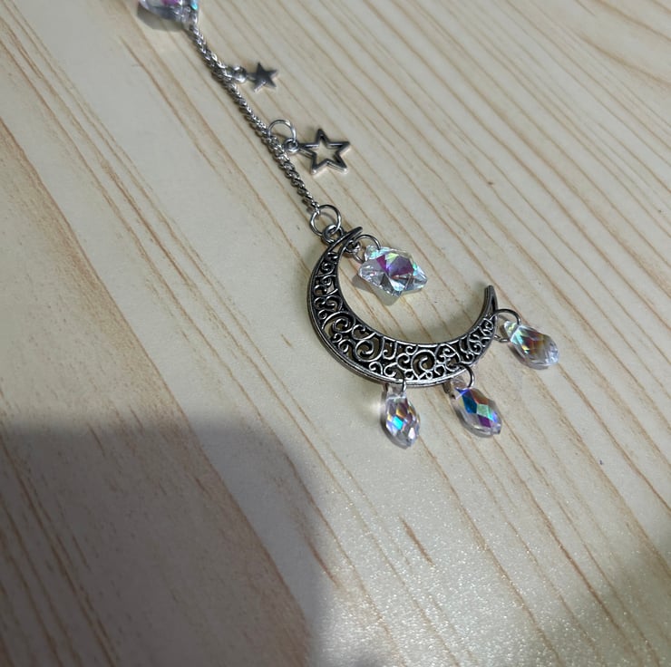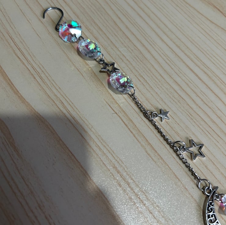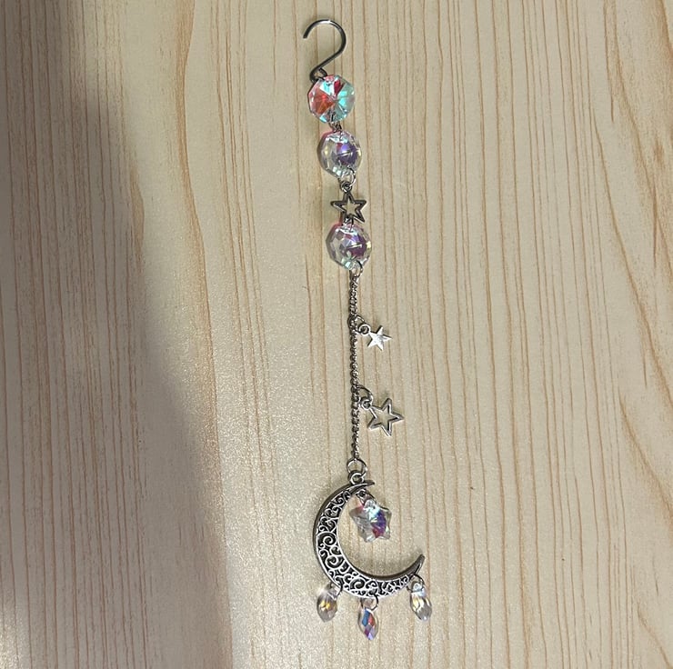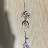 Made using acrylic beads and silver plated copper wire. Hang near a window and let the sunlight create the magic.