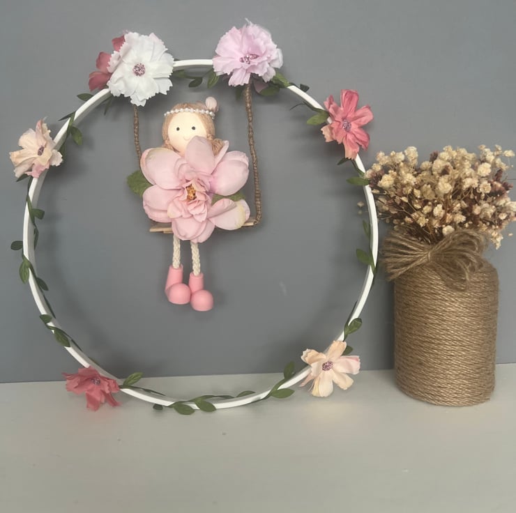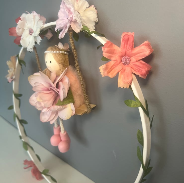 Add a touch of fairy magic to a nursery or child’s bedroom with this beautifully handmade floral hoop