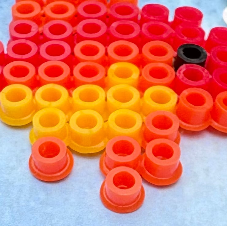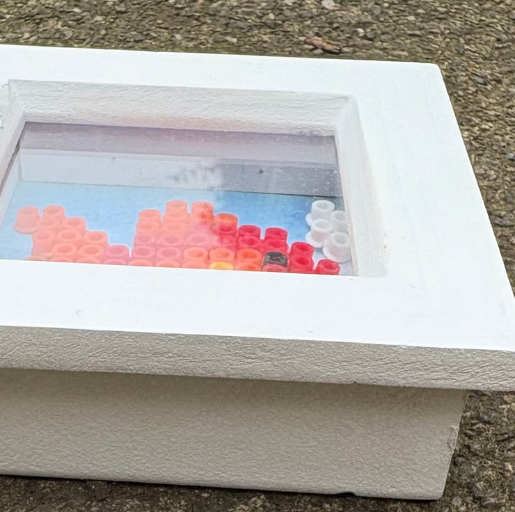 This is made with Hamma beads and is mounted in a glazed, white wooden frame that measures 7.5cm x 7.5cm.