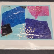 Valentines day blank card A2 folded size 5.5 x 4 with a white envelope packaged in Nativia bio-based film. Handmade by myself attending an art & craft group which is labelled on the back of the card. Love heart design is made by gluing tissue paper onto a laminated surface and peeling it off creating a glossy design effect.