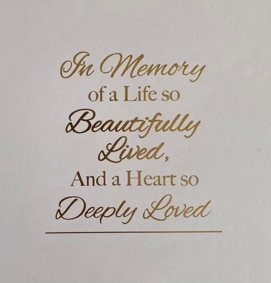 “In Memory of a Life So Beautifully Lived, And a Heart so Deeply Loved.”
