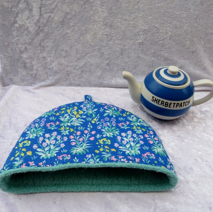 A small sized tea cosy, made to fit a 2 cup teapot.