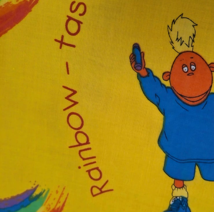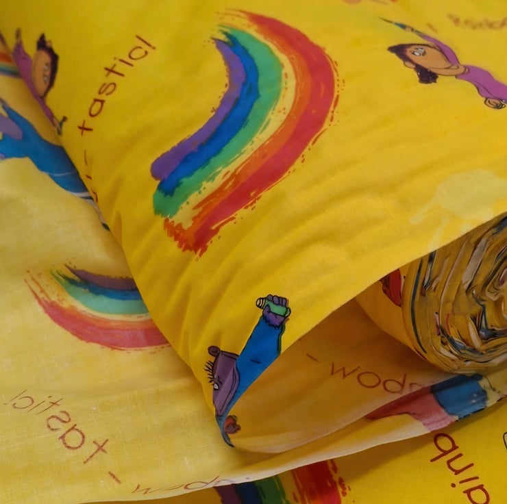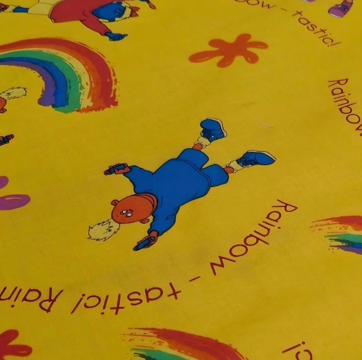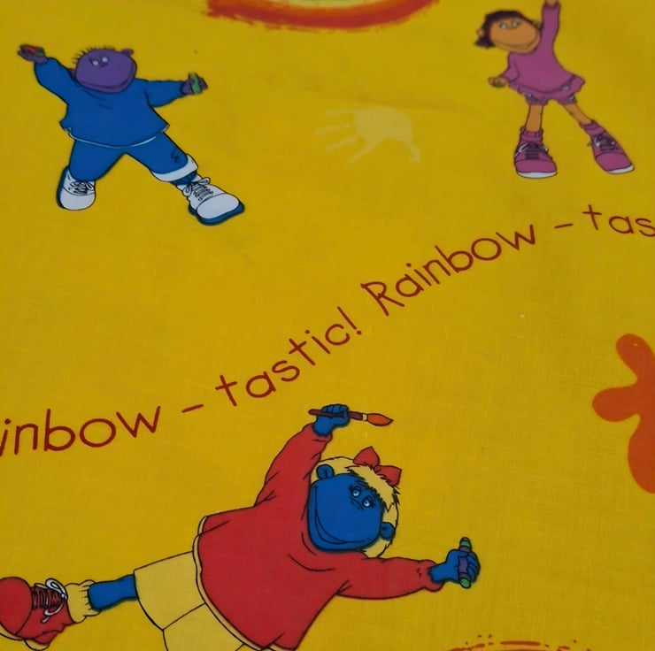 1 Metre Rainbow-Tastic Tweenies Children’s Cotton Fabric in Yellow 1.5m wide .