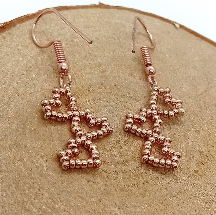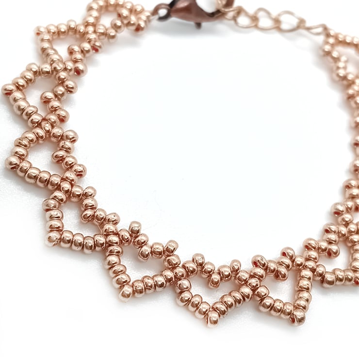 These sweet rose gold love hearts bracelet sets are made using seed beads, nymo beading thread and rose gold plated findings.