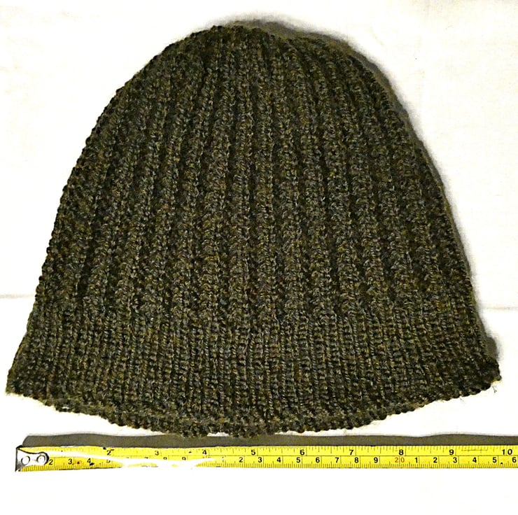 The hat when laid flat is 25cm across and 21cm from top to bottom. It can be turned up as required for the best fit. The wool has a comfortable slight stretch so should fit most head sizes.