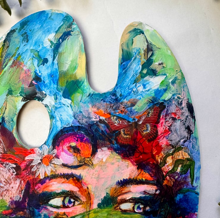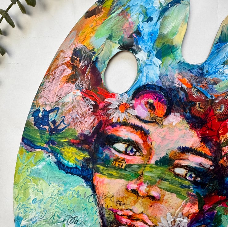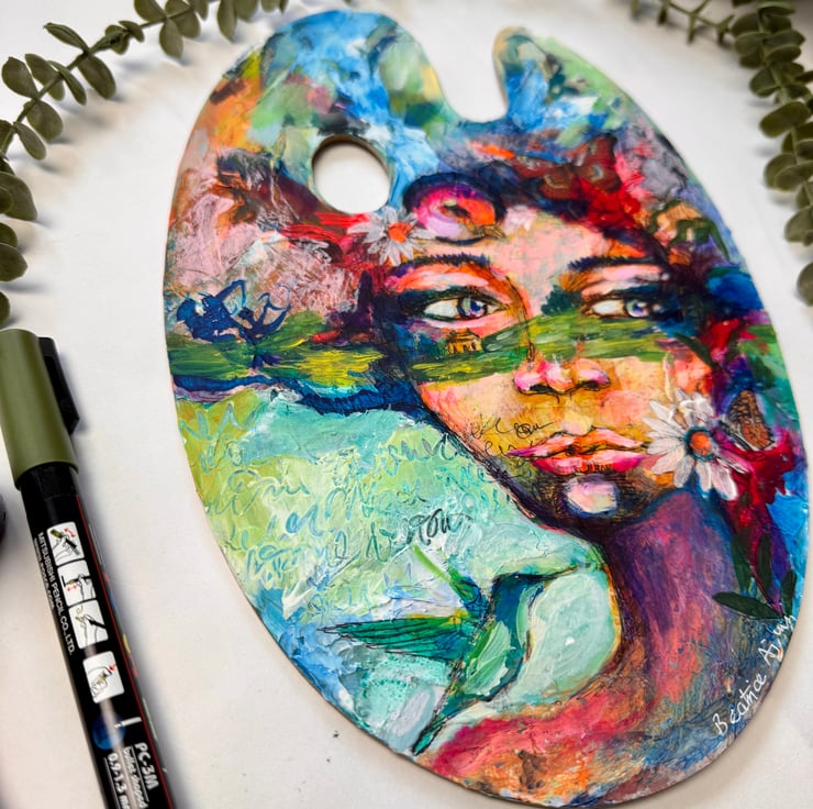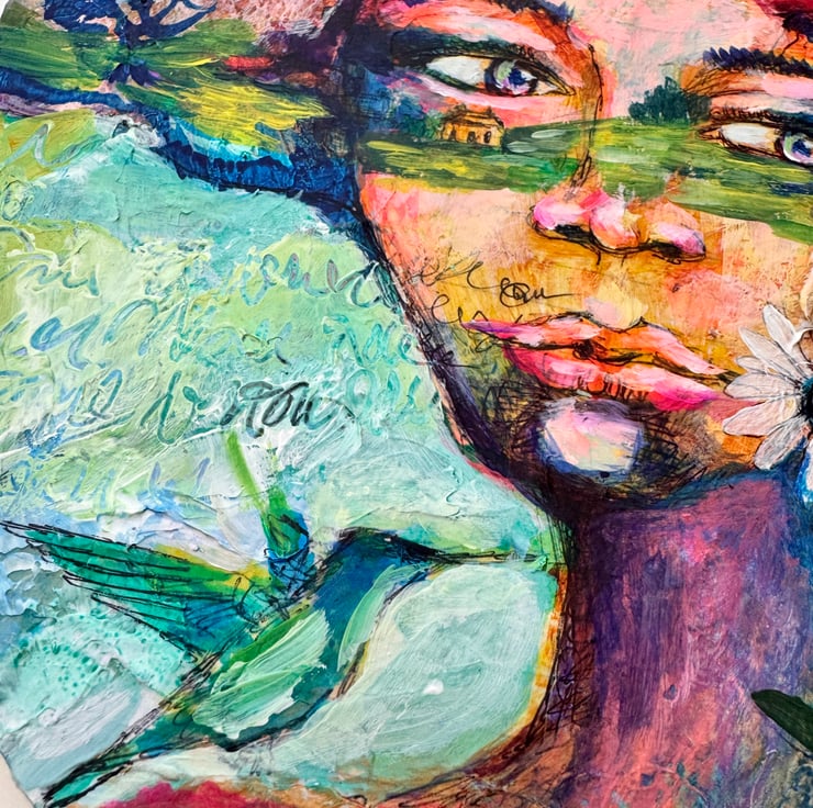 Entitled ‘Sarah’ this textured art piece is created using mixed media.
