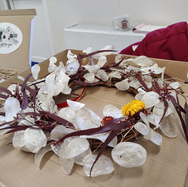 An understated yet elegant wreath that complements neutral, boho, farmhouse, and cottage-style interiors.