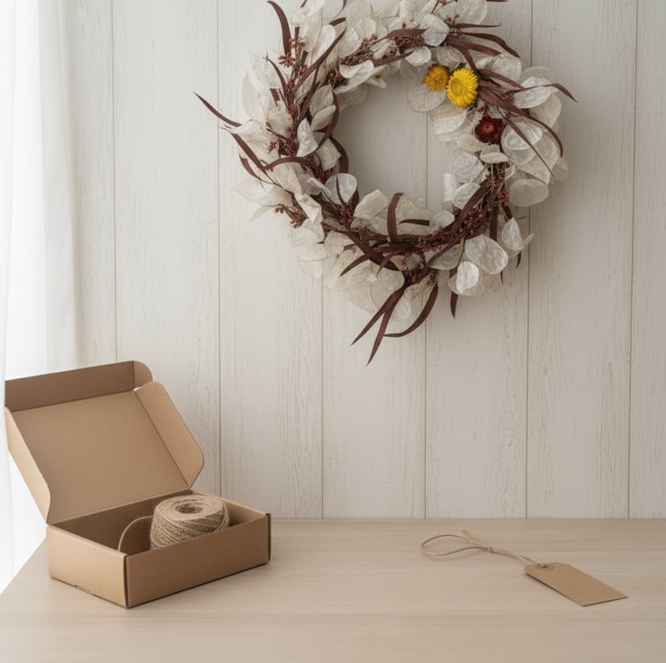 Styled on a door, wall, or shelf, this wreath adds texture and softness without overpowering your space. Its natural palette makes it easy to style year-round, offering a calm alternative to seasonal or overly bold decor.