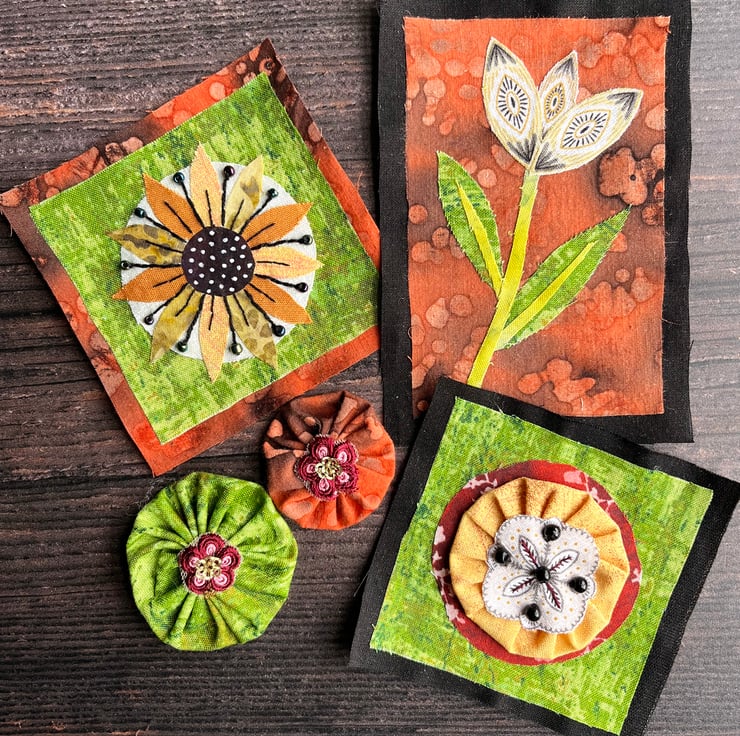 Craft supplies, textile collage, gift for crafter, boho flowers