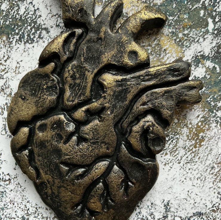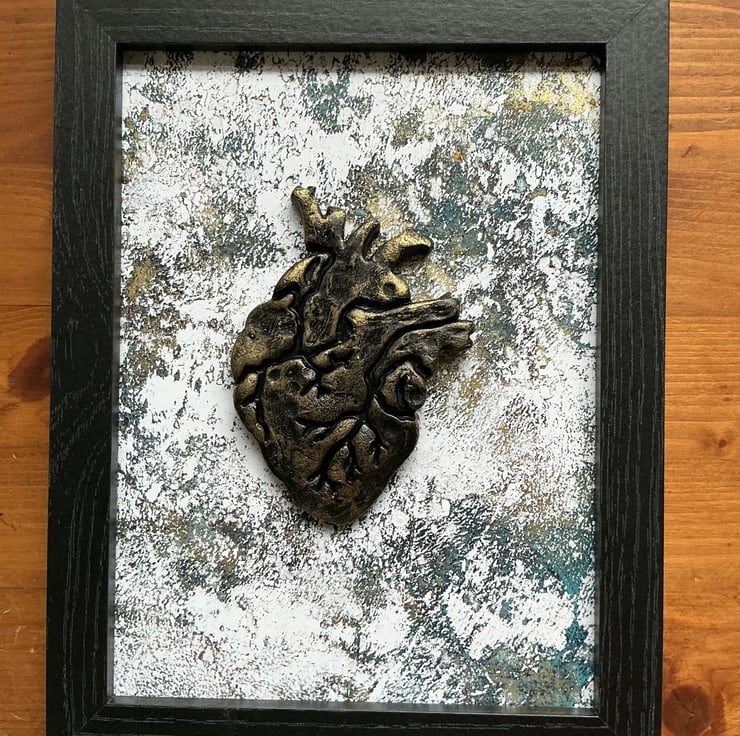 Made from air dry clay and mounted on a gel print background, this heart could be an alternative valentine gift or just something a little unusual to decorate your wall.