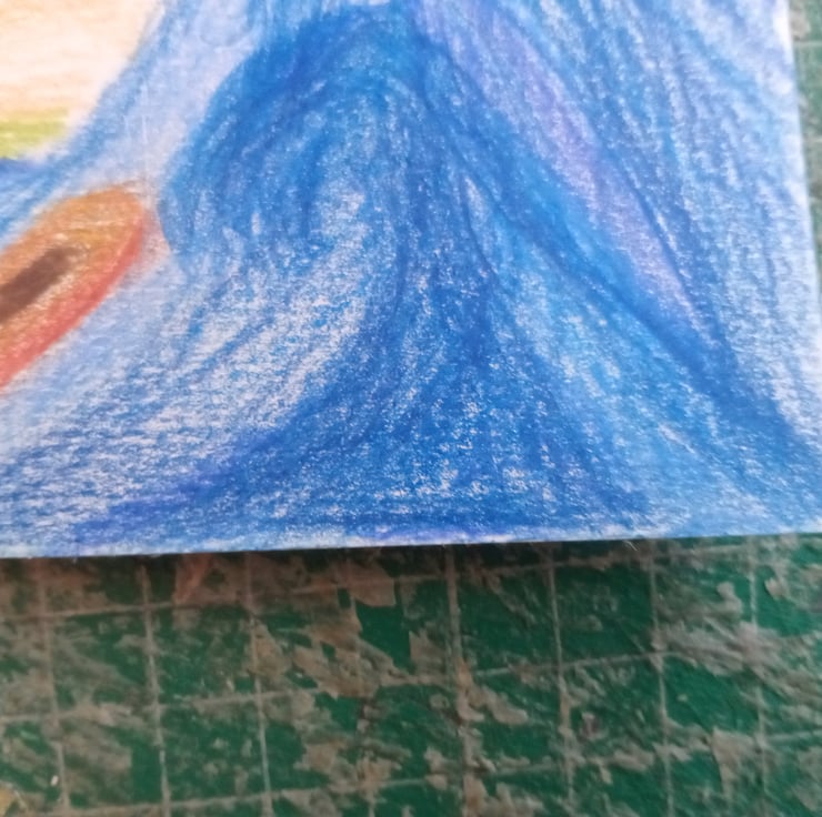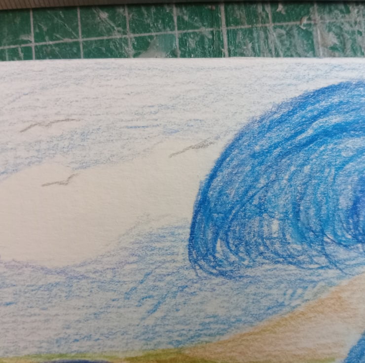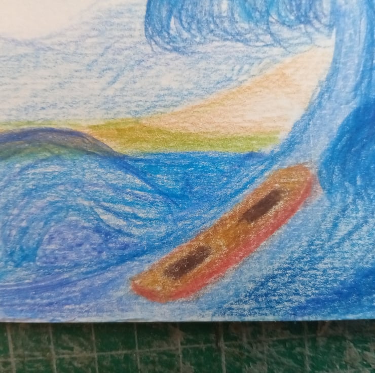 Coloured pencil original art. A6 seascape Naive illustration