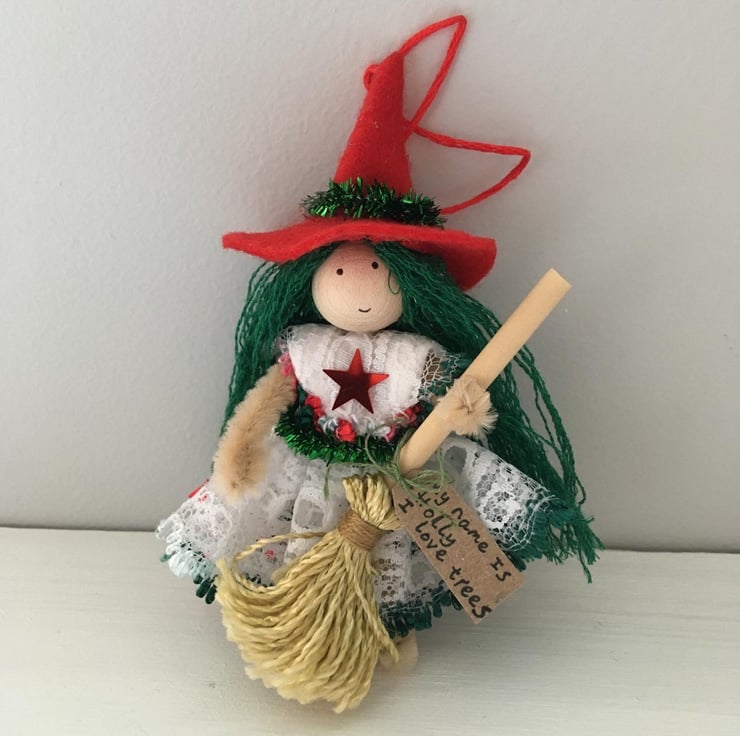 Tiny Witch Doll Hanging Decoration - Red And Green
