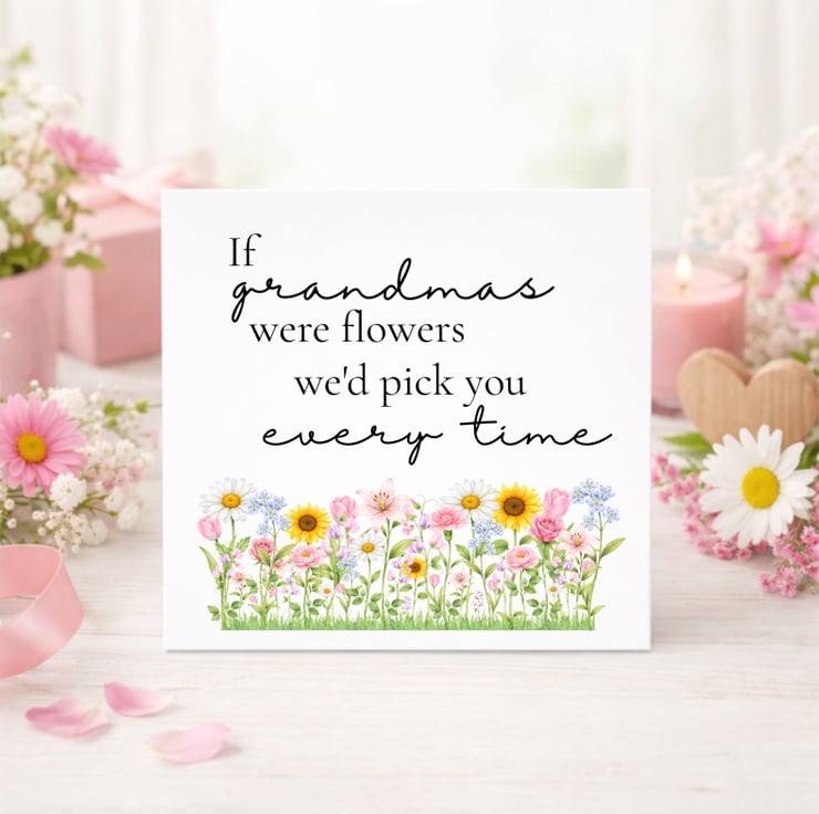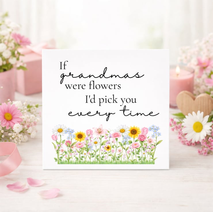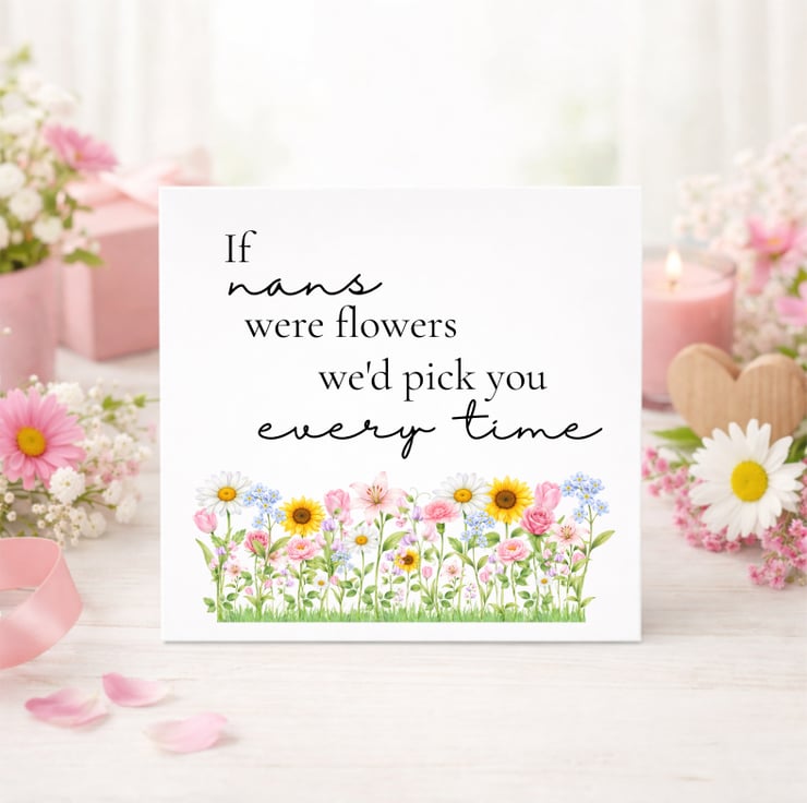 This Mother’s Day card features the heartfelt message “If mums were flowers I’d pick you every time”, paired with a delicate row of colourful spring flowers along the bottom.