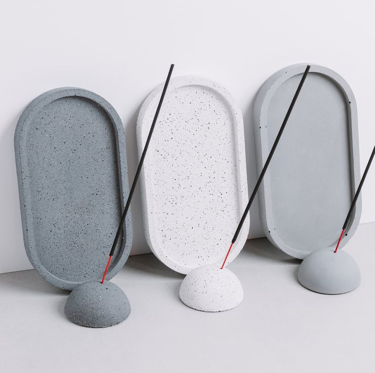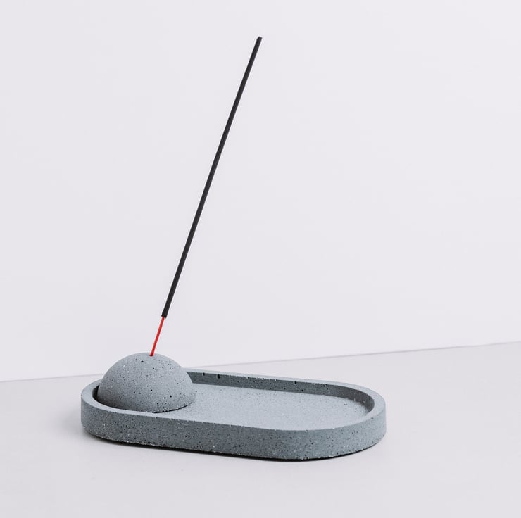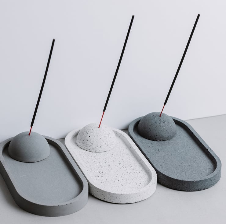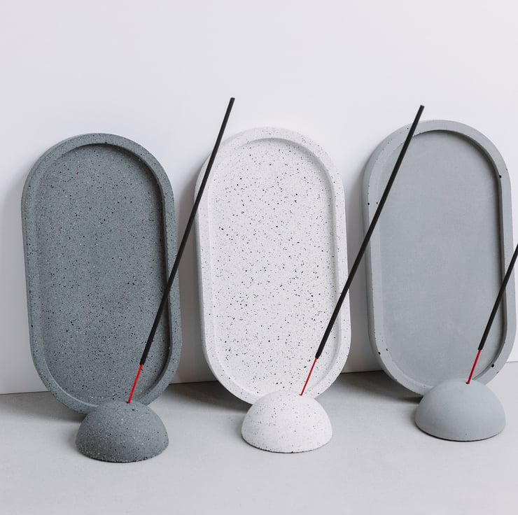 Concrete Incense Holder (brand new design created by Concrete Jungle Arts) built from two elements: half ball and the tray.