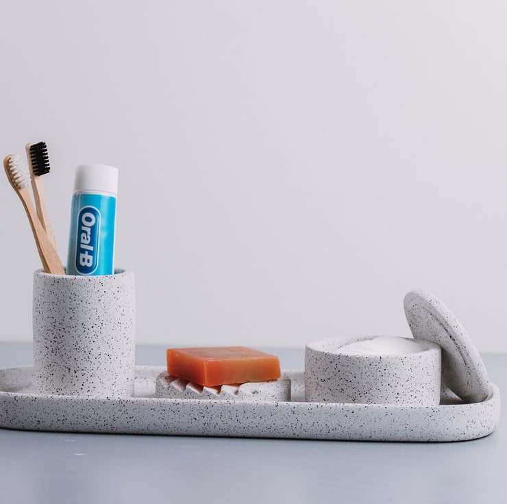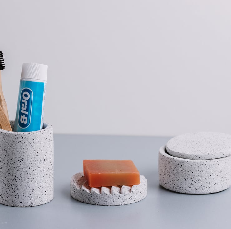 Handmade Concrete Terrazzo Bathroom Set: Oval Tray, Soap Dish & Toothbrush Holde