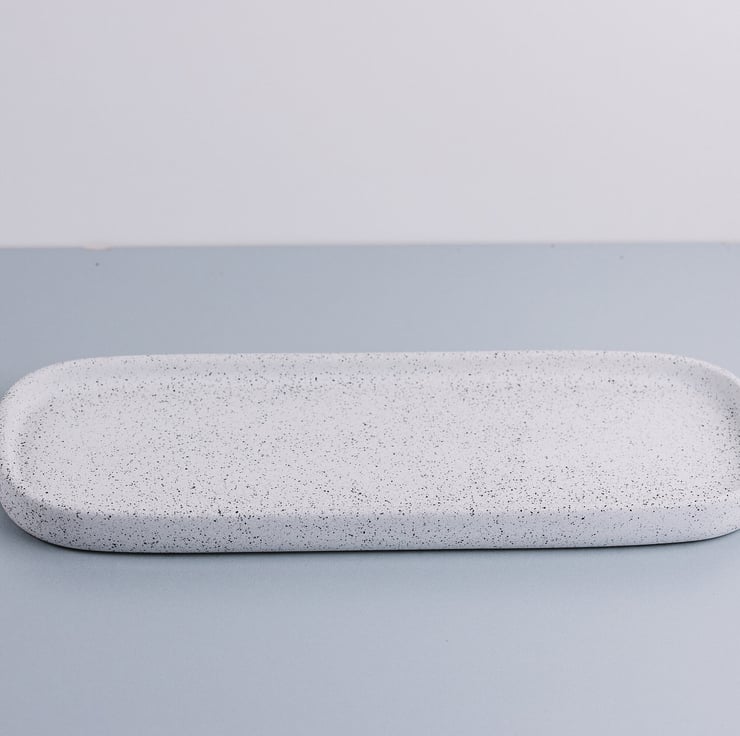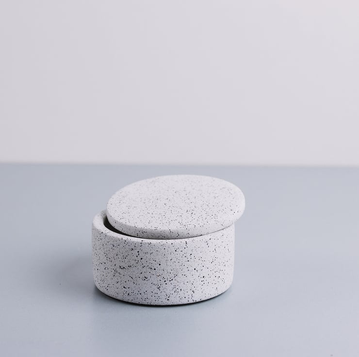 Individually handmade concrete terrazzo set of oval tray, toothbrush holder, soap dish and pot with lid - stunning design and well crafted,