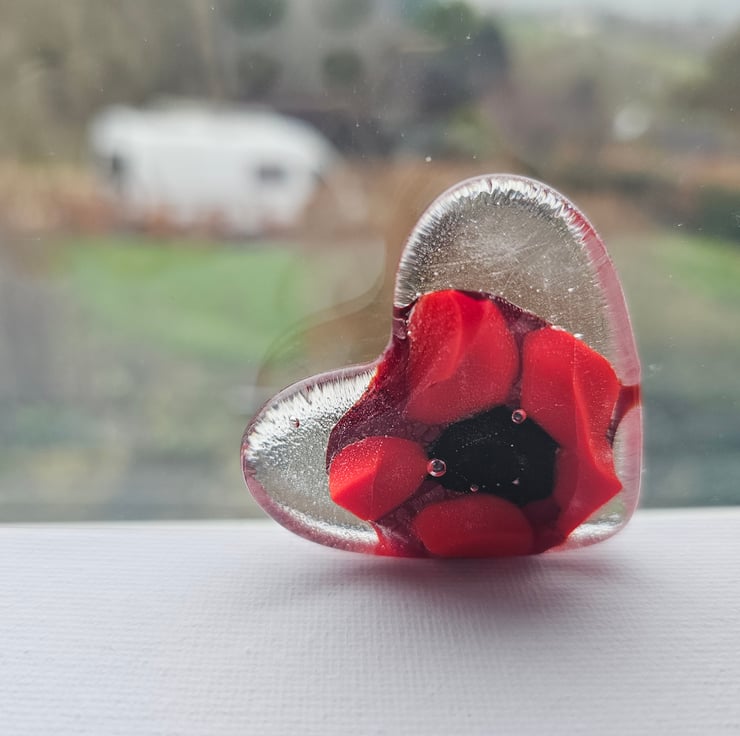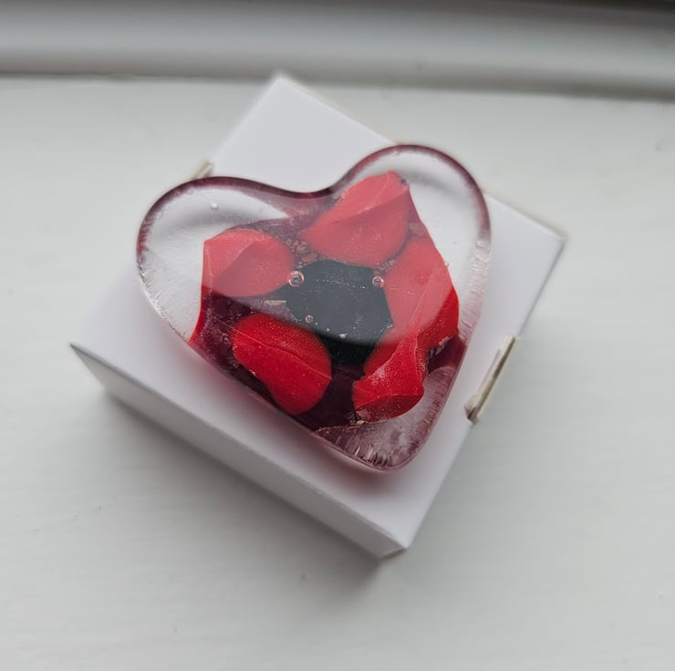 A perfect small gift to show someone you care for them. Or beautiful to keep or yourself. Many people find comfort in having an item to handle in their pocket. Hand cut and kiln fused, a unique item. Very tactile lightly textured underneath and glossy smooth on top. Will arrive wrapped in tissue and in a plain white box tied with ribbon. It can be posted directly to the gift recipient with a printed message of your choice. Approximately 5cm/2" at the widest point. The gift box is 6cm/2.5" square. Please note outer packaging may be recycled.