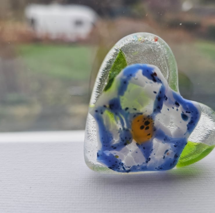 A perfect small gift to show someone you care for them. Or beautiful to keep or yourself. Many people find comfort in having an item to handle in their pocket. Hand cut and kiln fused, a unique item. Very tactile lightly textured underneath and glossy smooth on top. Will arrive wrapped in tissue and in a plain white box tied with ribbon. It can be posted directly to the gift recipient with a printed message of your choice. Approximately 5cm/2" at the widest point. The gift box is 6cm/2.5" square. Please note outer packaging may be recycled.