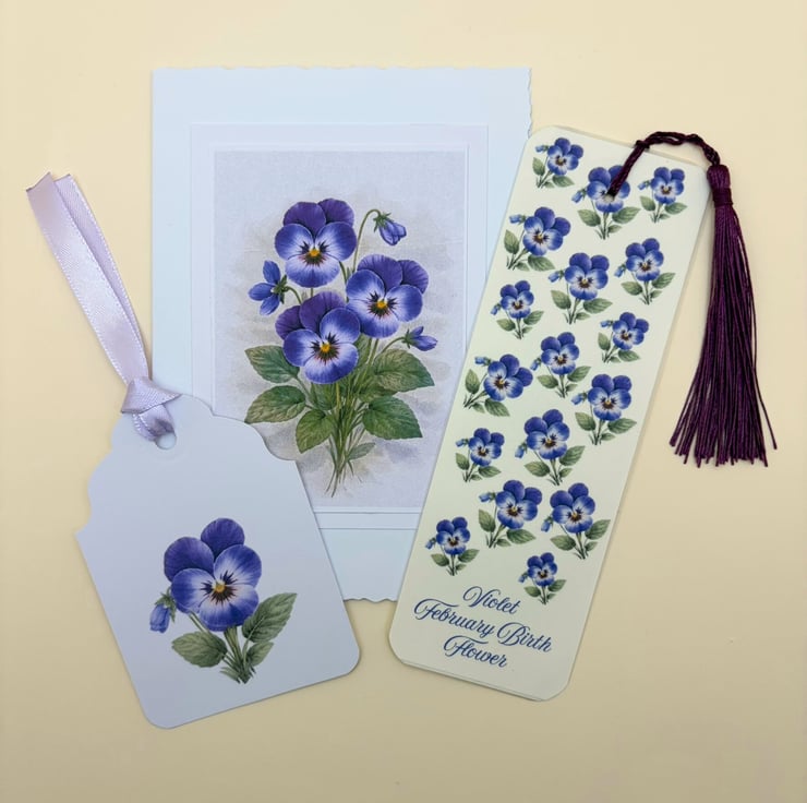 This bookmark has been designed to coordinate with other Violet birth flower items in the Peony Crafts collection
