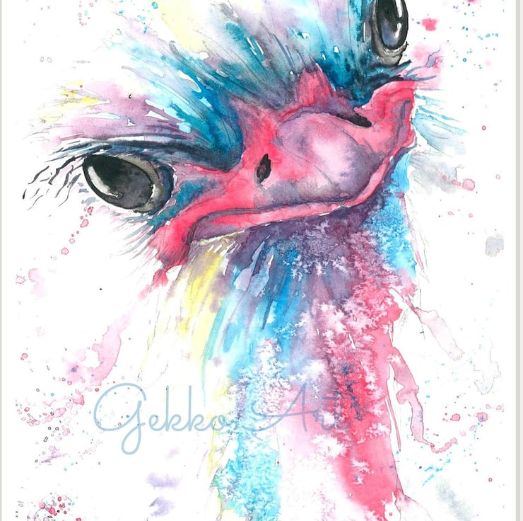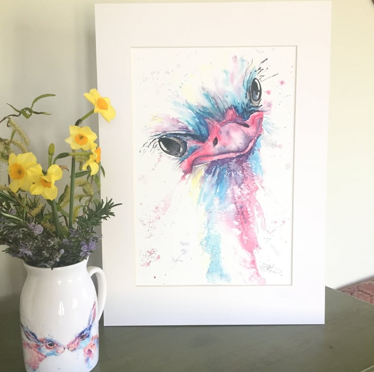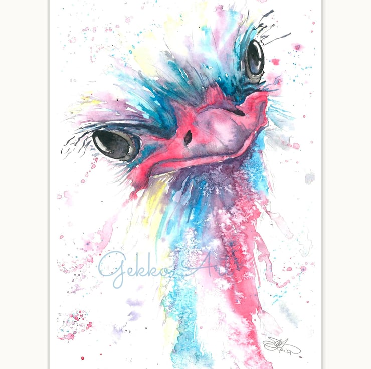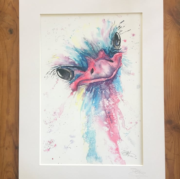 This is an archival quality fine art print from my original painting of an Ostrich named 'Olive'.