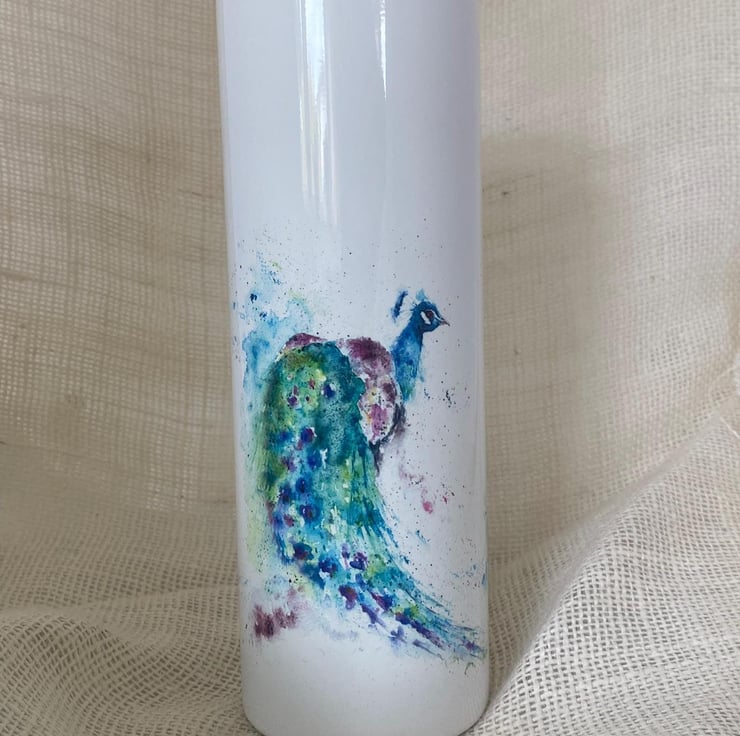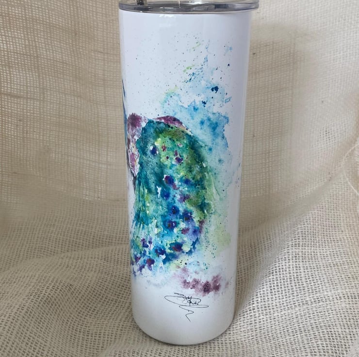 Peacock Watercolour Tumbler. 20oz Vacuum-Insulated Stainless Steel Travel Cup, w