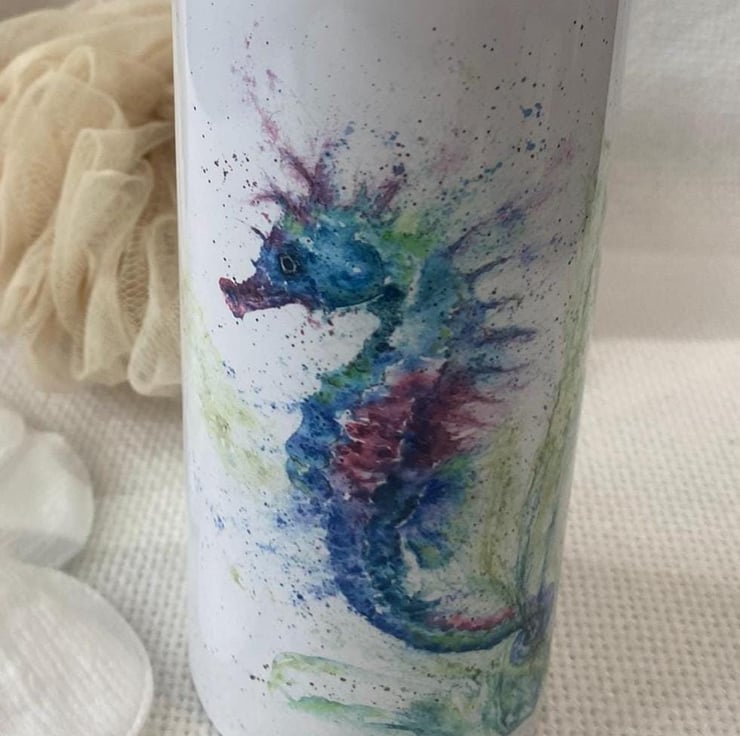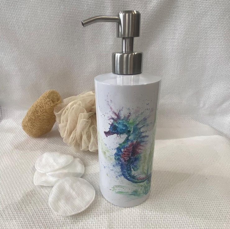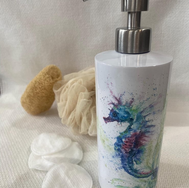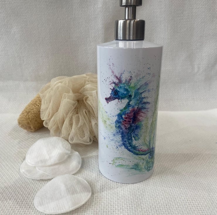 Seahorse Watercolour Design, Liquid Soap Pump Dispenser, by Wildlife Artist Sand