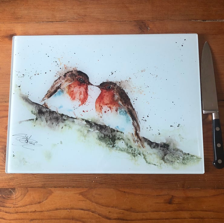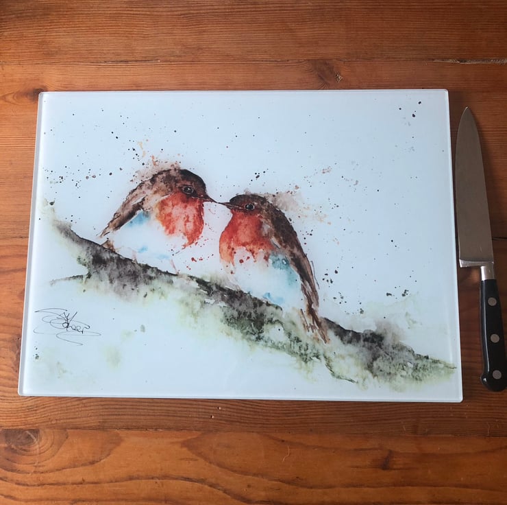 Robins Kiss Glass Chopping Board, Kitchen Worktop Saver, Table Mat, Cutting Mat.