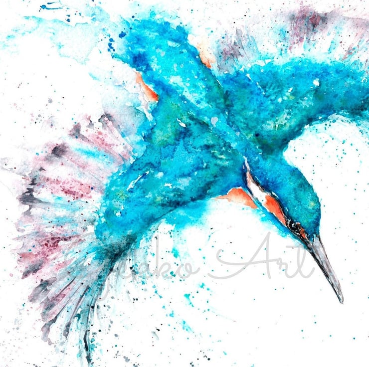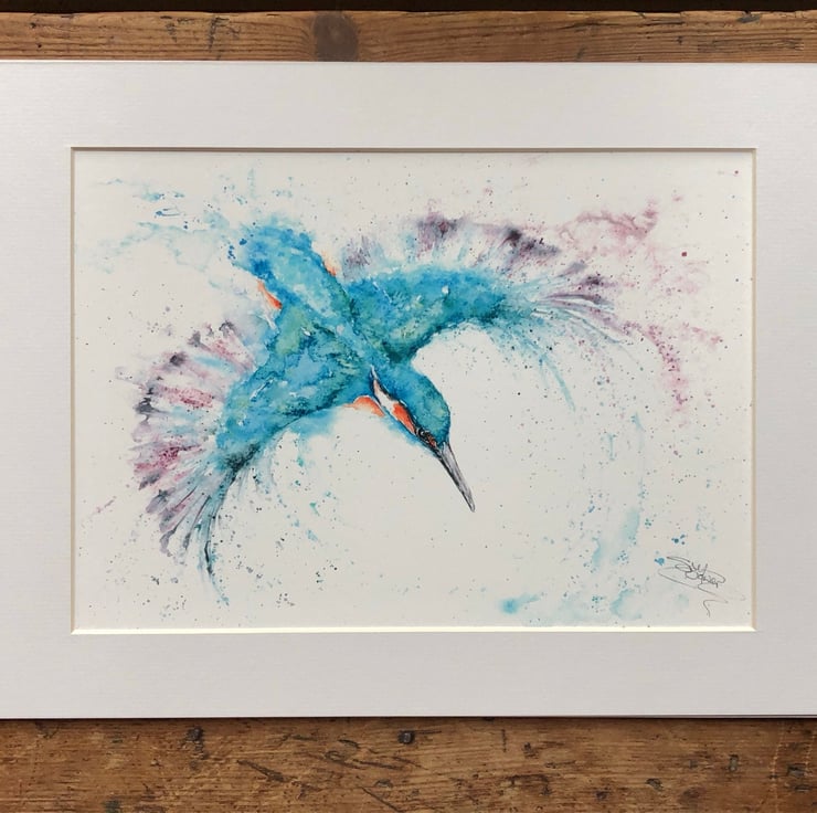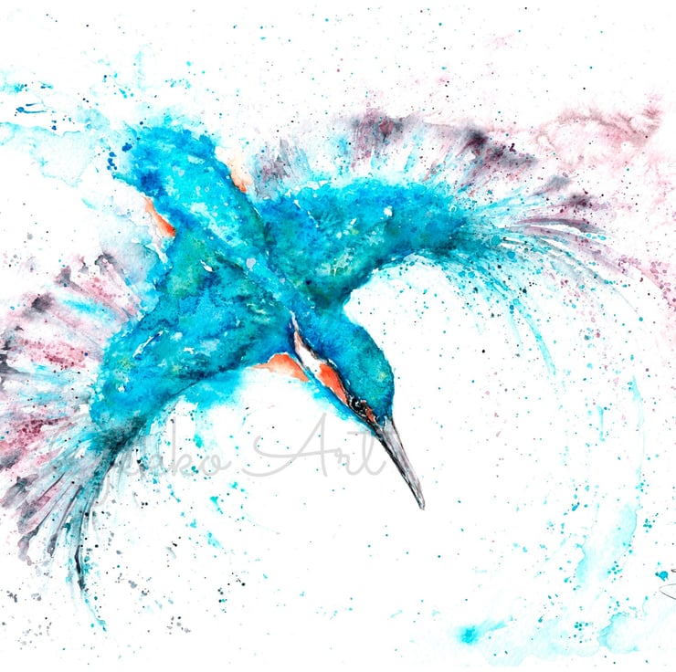 This is a limited edition, archival quality fine art print from my original painting of a kingfisher named 'Bluemotion'.