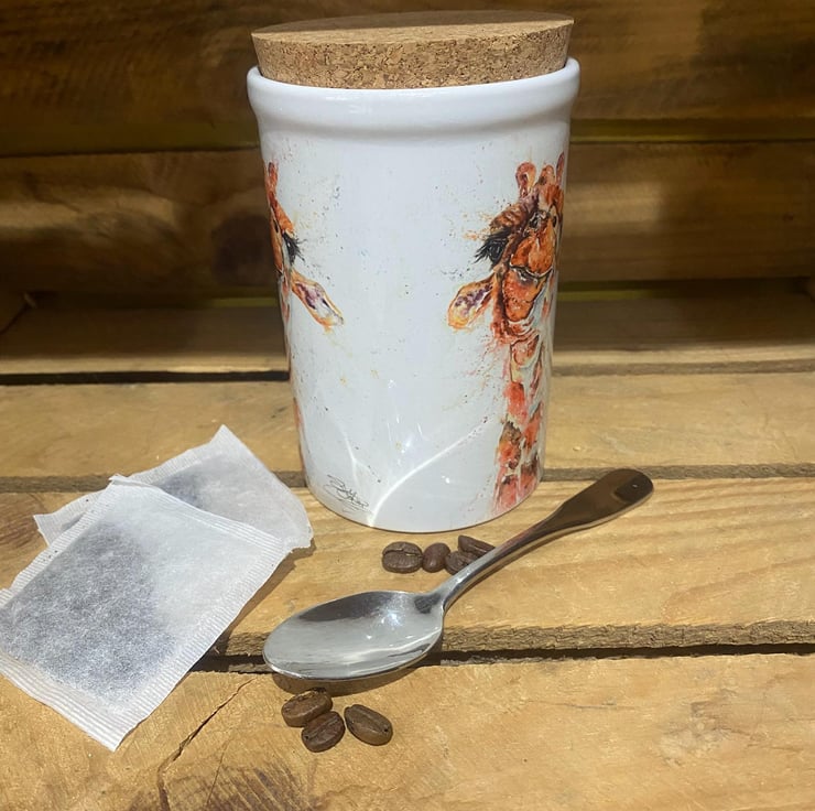 This ceramic storage jar is ideal for tea, coffee and sugar, and handy as a dressing table or bathroom tidy too. It holds 15 ounces (UK imperial measure) and has a cork lid. The jar measures 13cm high x 9cm in diameter. The ceramic jar has been printed in my studio in Somerset with a design from one of my original watercolour paintings. It will be sent securely wrapped in recycled bubble wrap in a cardboard box.