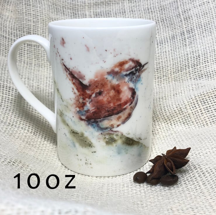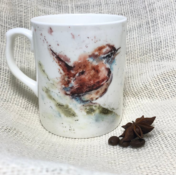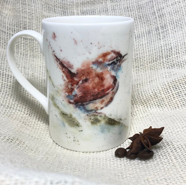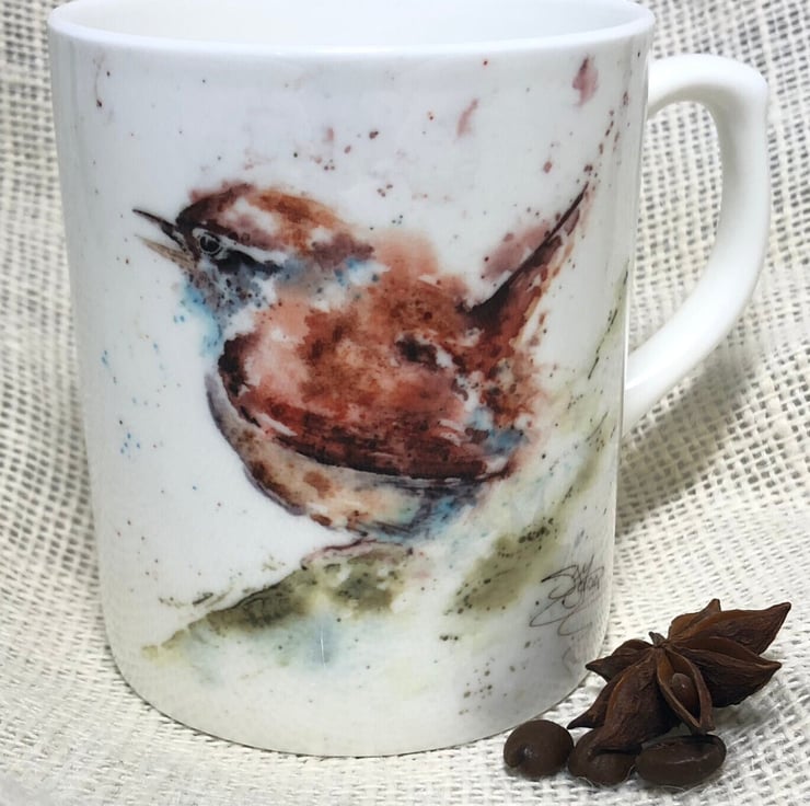 Wren Watercolour Bone China Mug, China Cup, Jenny Wren, Wildlife Art Mug by Wate
