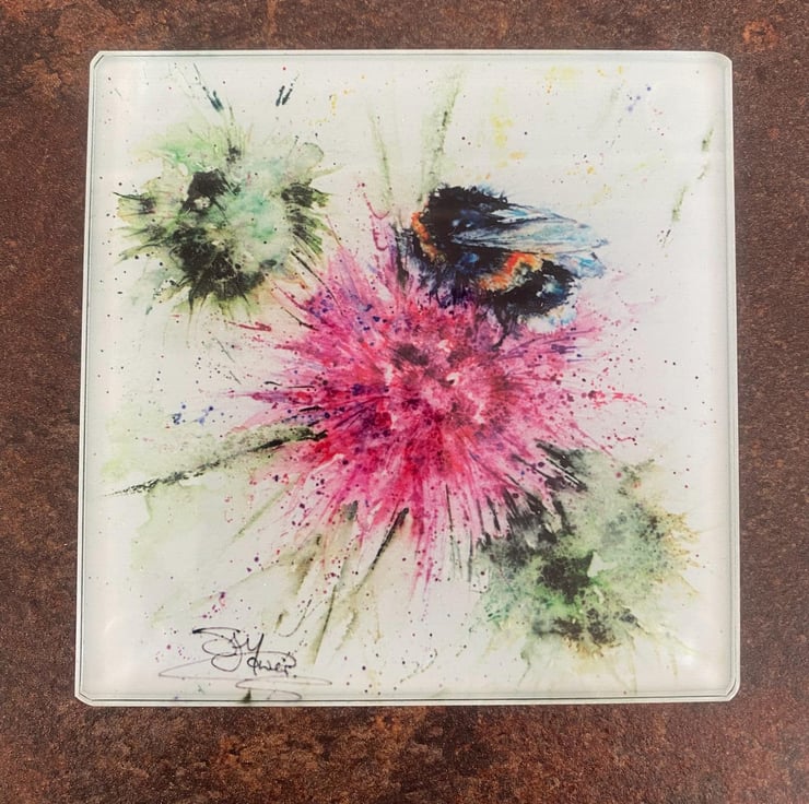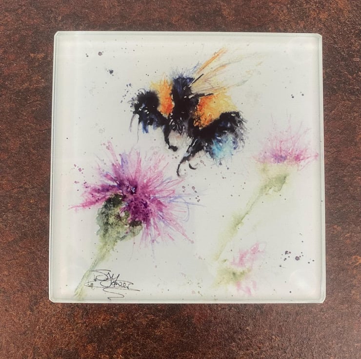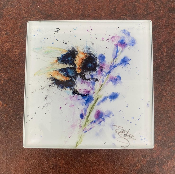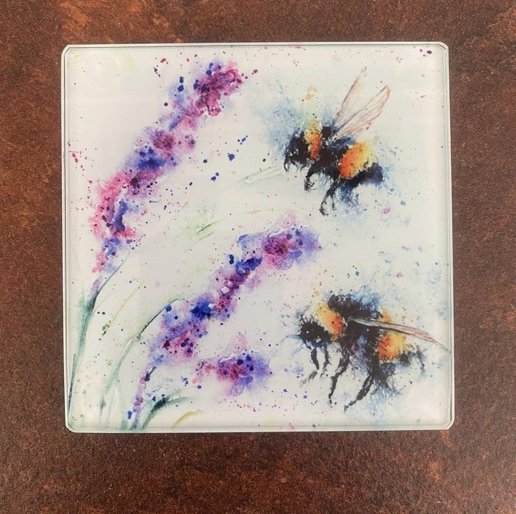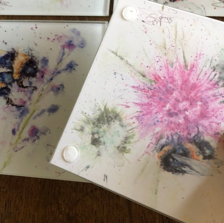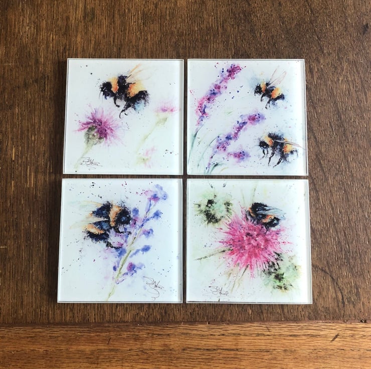 A set of 4 glass coasters with beautiful watercolour bees from my original watercolour paintings.