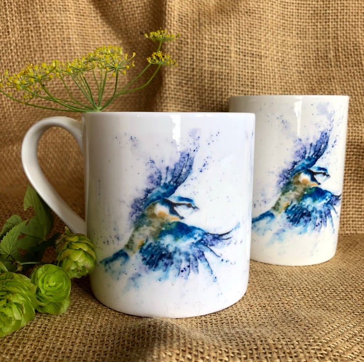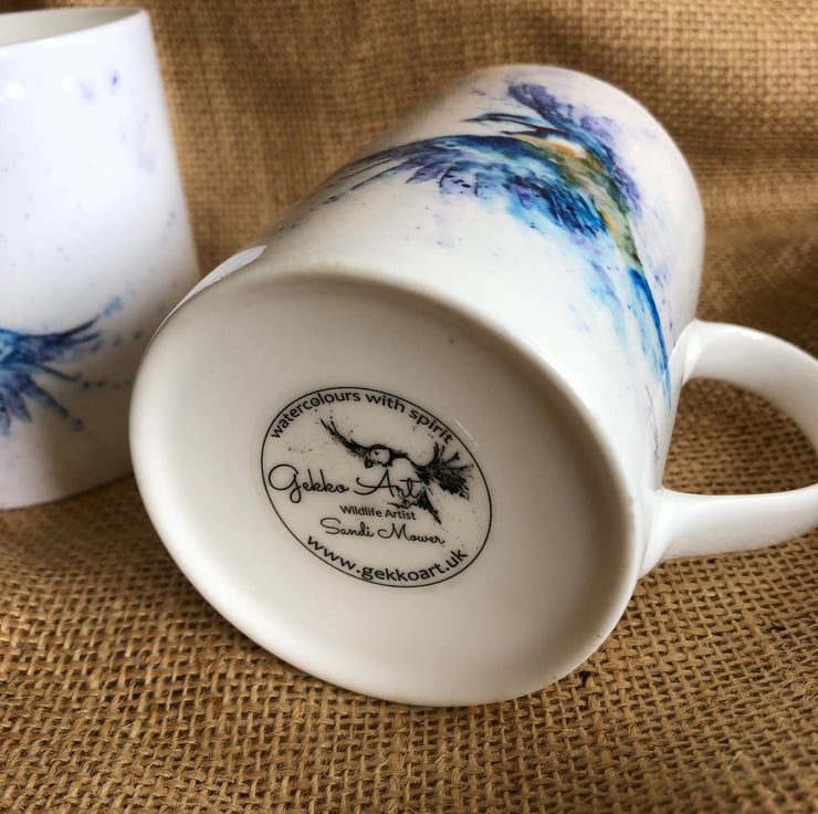 The design is reproduced from my original watercolour painting and is hand printed on to the mug through dye sublimation. In most cases, the design is repeated on both sides, but in the case of some landscape-orientation designs, the image is used once as it covers more than 50% of the mug.