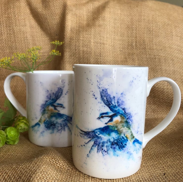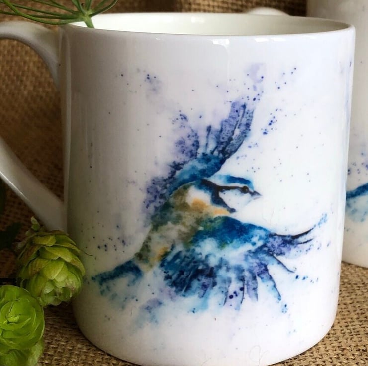 Bluetit Watercolour Bone China Mug, 10oz China Cup, Gift, Wildlife Art Mug by Wa