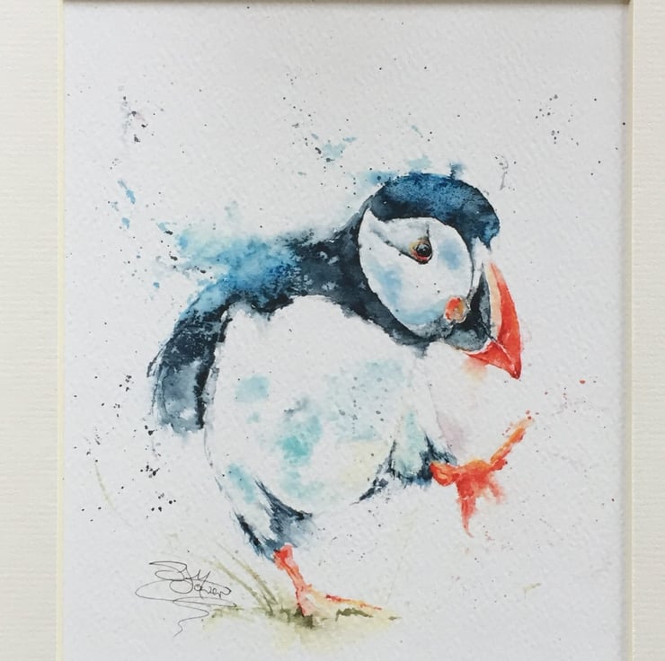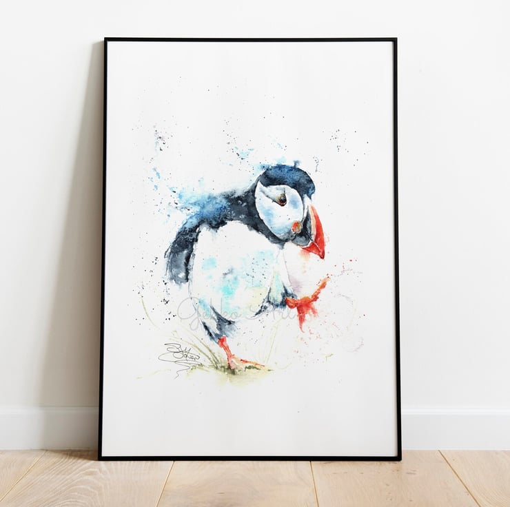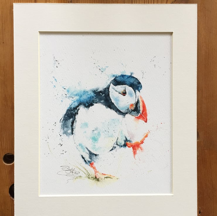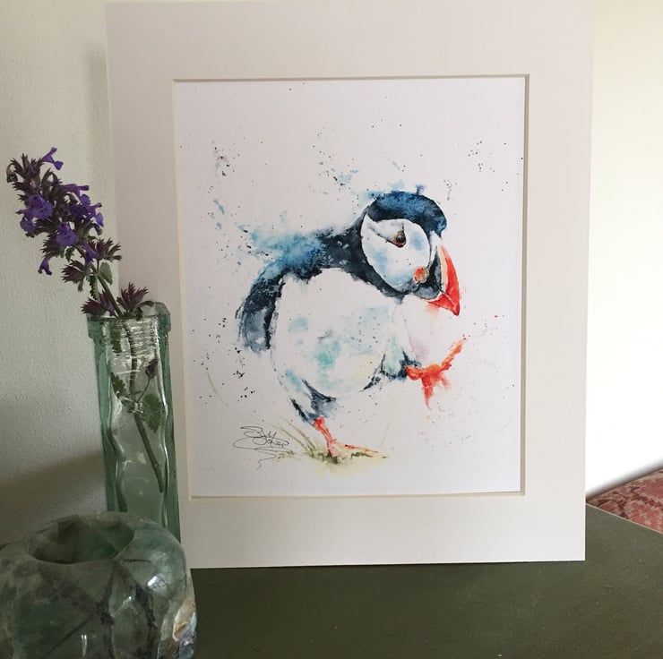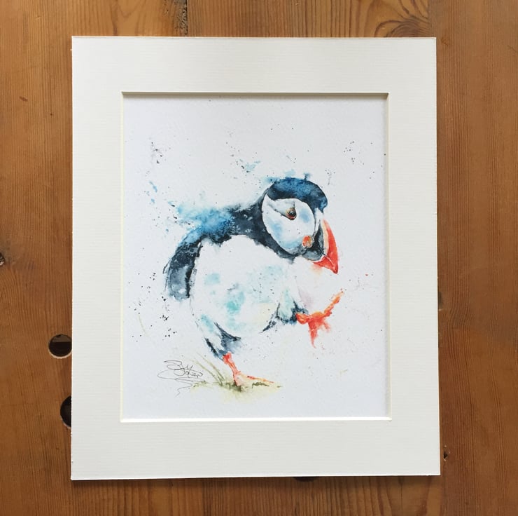This is a limited edition, archival quality fine art print from my original painting of a running puffin named 'Puffin Billy'.