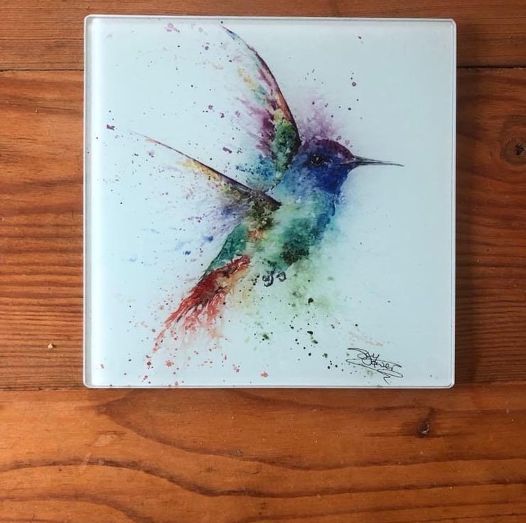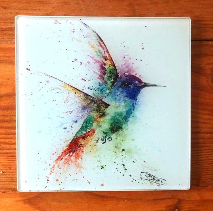 Hummingbird Watercolour Glass Trivet, Pot Stand, Table Mat, Placemat, Hot Plate