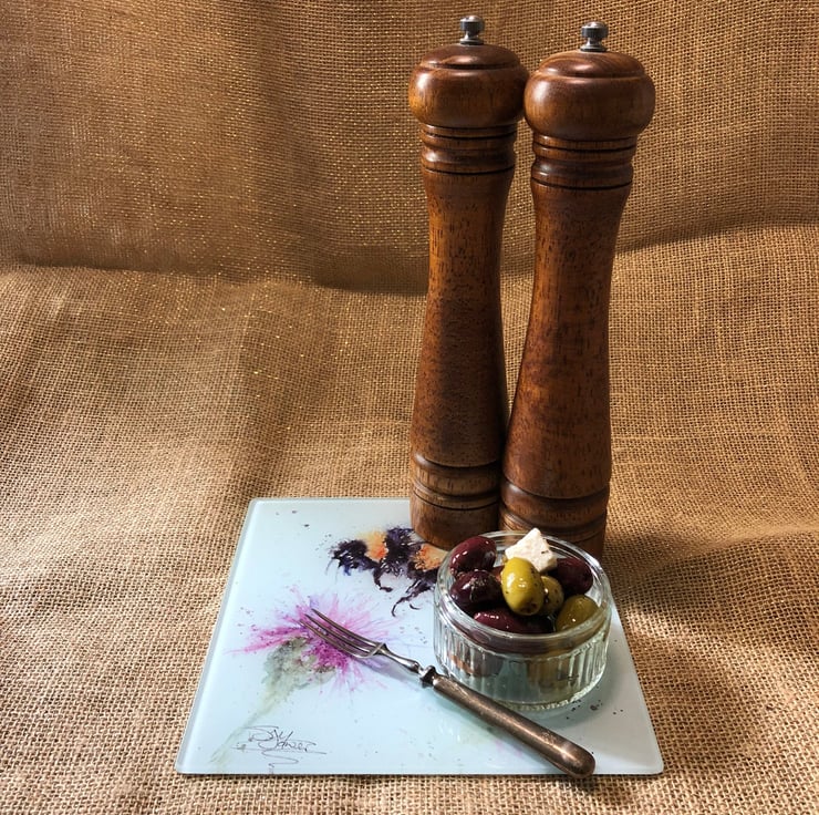 A small glass table mat with a smooth surface and beautiful watercolour art from my original watercolour paintings.