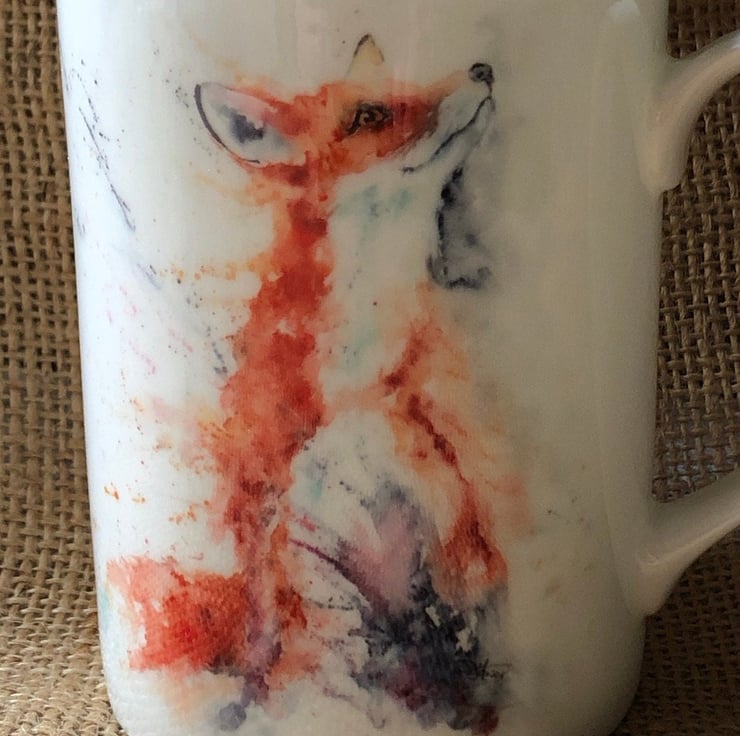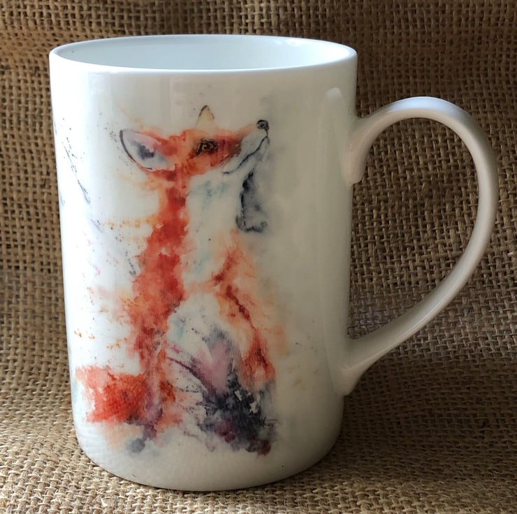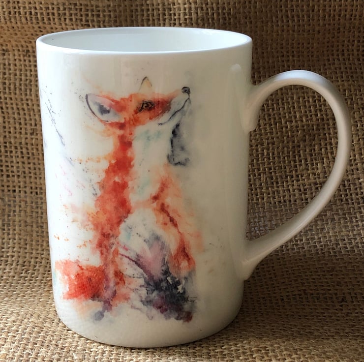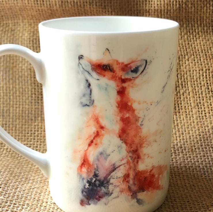 Foxy Vixen Watercolour Bone China Mug, China Cup, Gift, Wildlife Art Mug by Wate