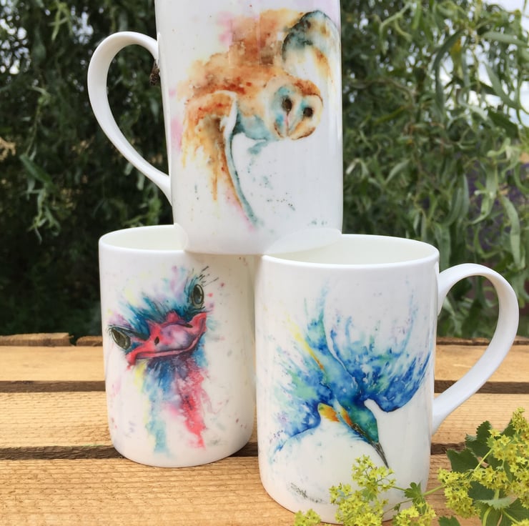 The design is reproduced from my original watercolour painting and is hand printed on to the mug through dye sublimation. In most cases, the design is repeated on both sides, but in the case of some landscape-orientation designs, the image is used once as it covers more than 50% of the mug.
