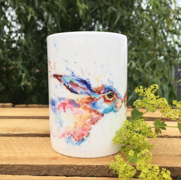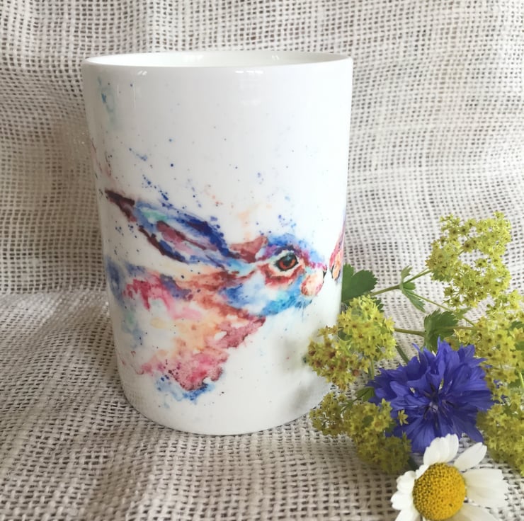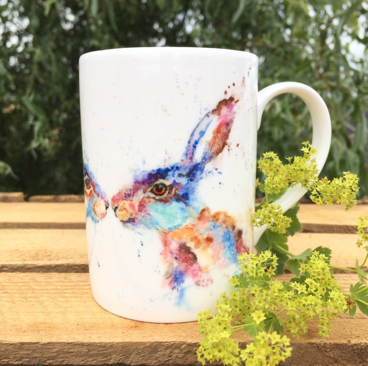 Kissing Hares Watercolour Design Mug, 10oz china cup, Wildlife Art Mug by Waterc