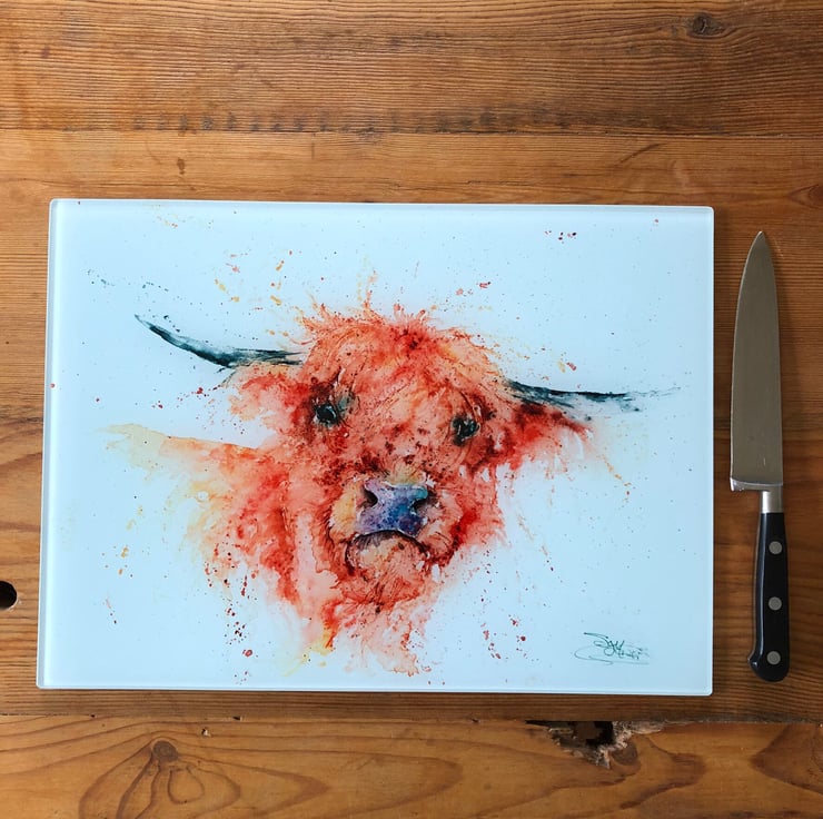 Angus the Highland Cow Glass Chopping Board, Kitchen Worktop Saver, Table Mat, C