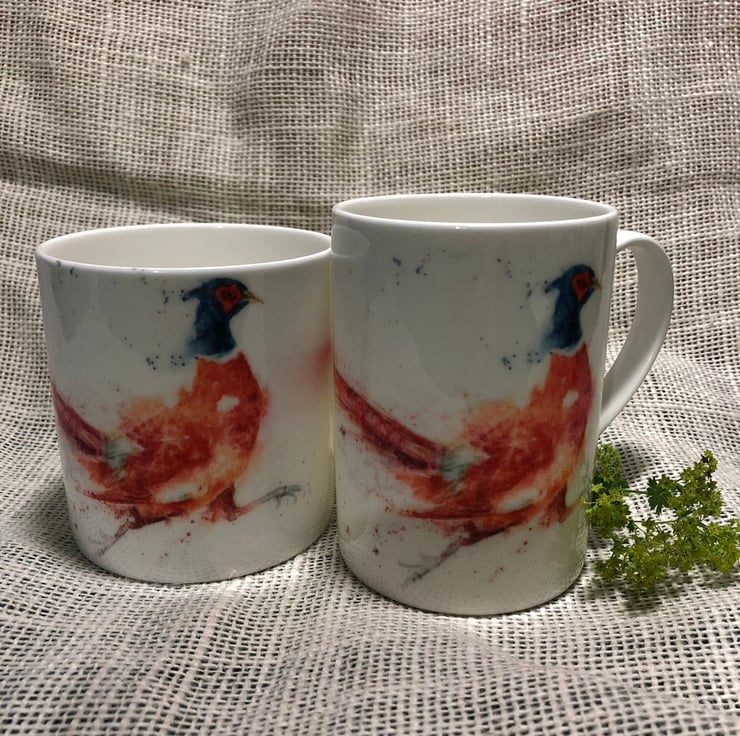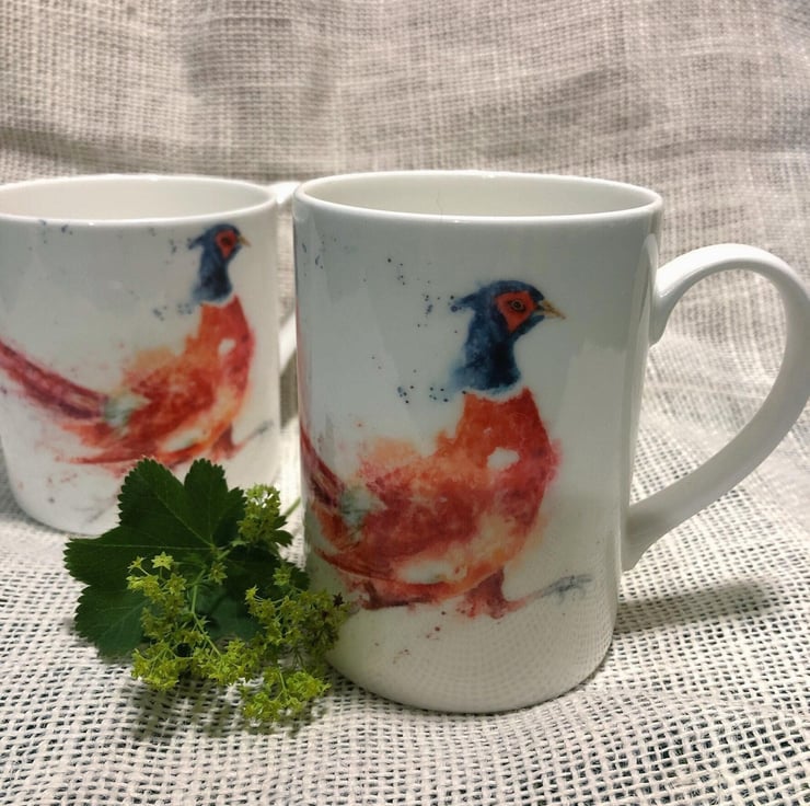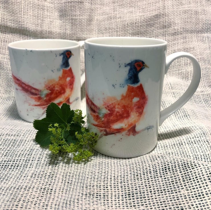Running Pheasant Watercolour Bone China Mug, Wildlife Art Mug by Watercolour Art