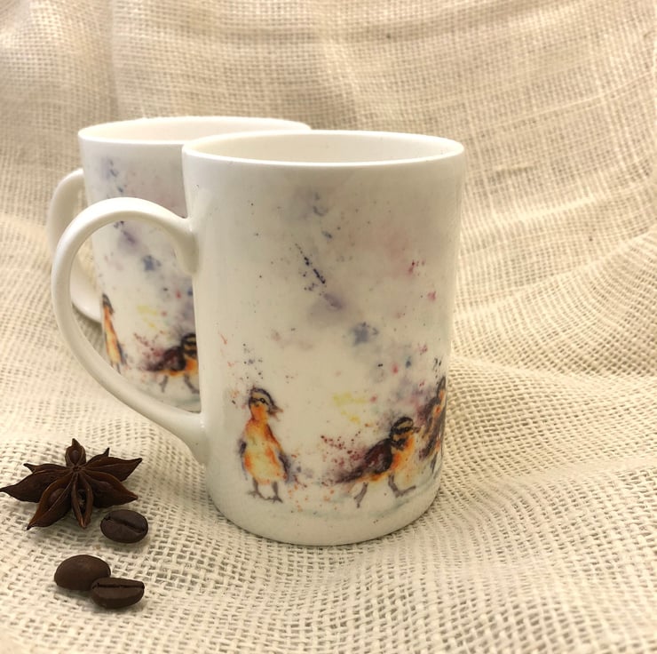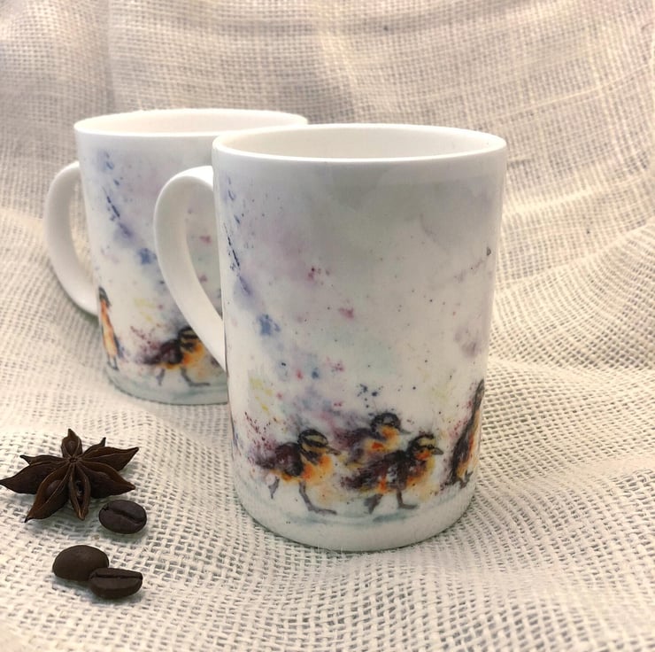 The design is reproduced from my original watercolour painting and is hand printed on to the mug through dye sublimation. In most cases, the design is repeated on both sides, but in the case of some landscape-orientation designs, the image is used once as it covers more than 50% of the mug.