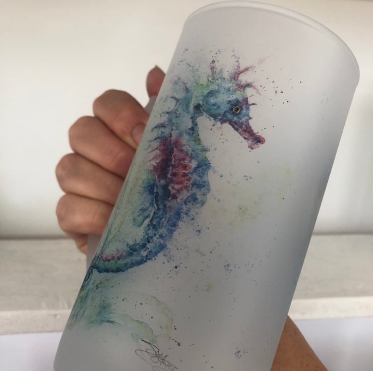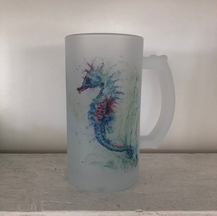 Seahorse Frosted Beer Glass, Tankard, Stein, 500ml Drinks Glass with Handle. Wat