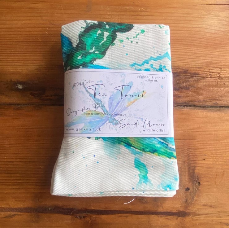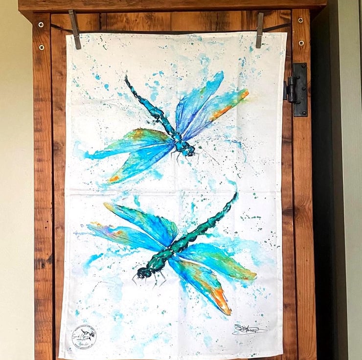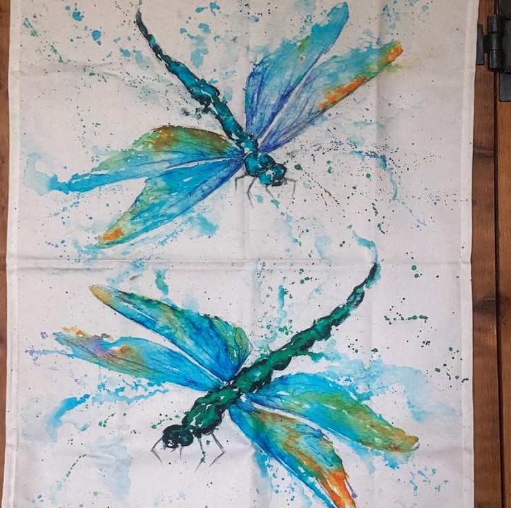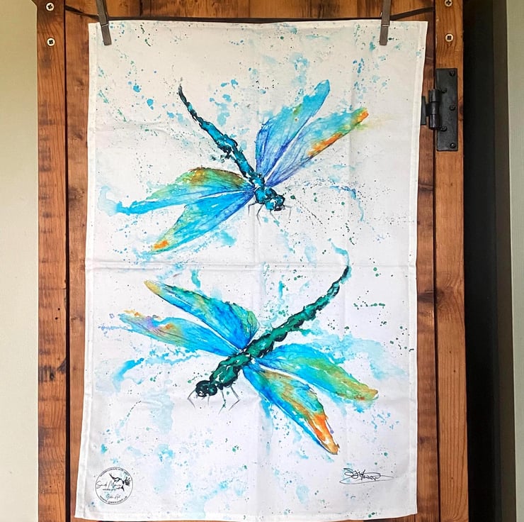 Dragonflies Tea Towel, Wildlife Art Tea Towel, 100% Cotton, Homeware, Textiles,
