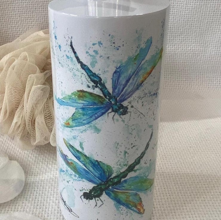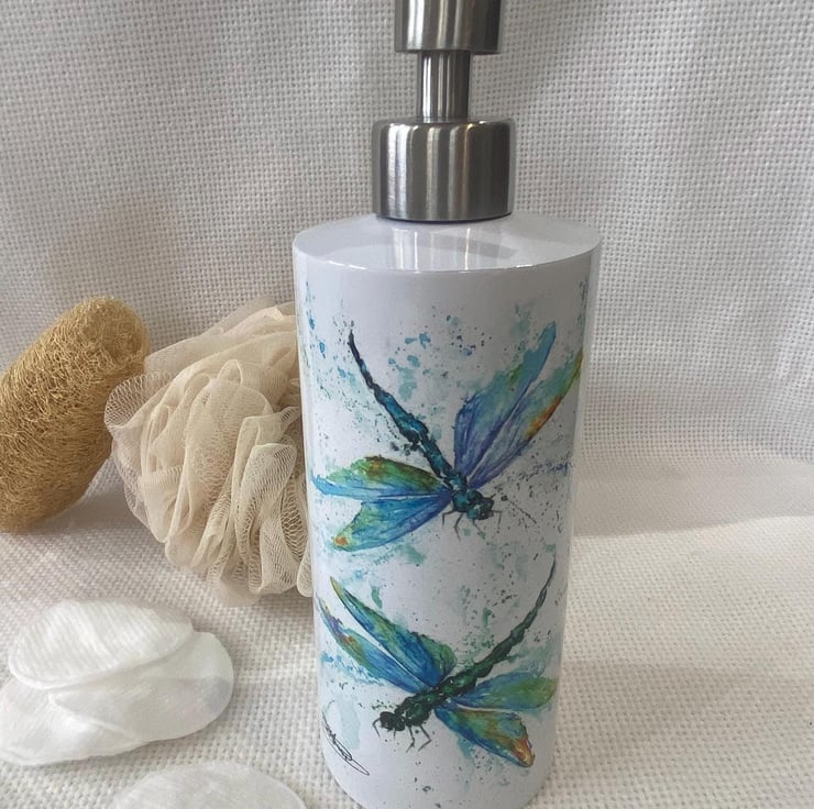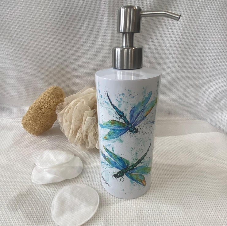 Dragonflies Watercolour Design, Liquid Soap Pump Dispenser, by Wildlife Artist S